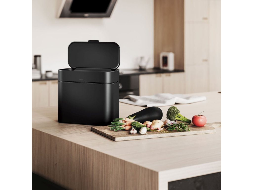 Koš na organický odpad z kuchyně je primárně určený k připevnění na klasické odpadkové koše Simplehuman, aby třídění bioodpadu bylo co nejefektivnější. Taktéž jej ale můžete volně položit přímo na kuchyňskou linku.