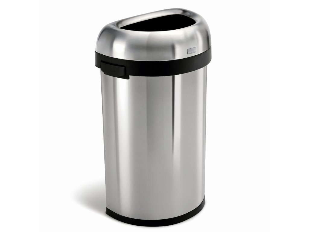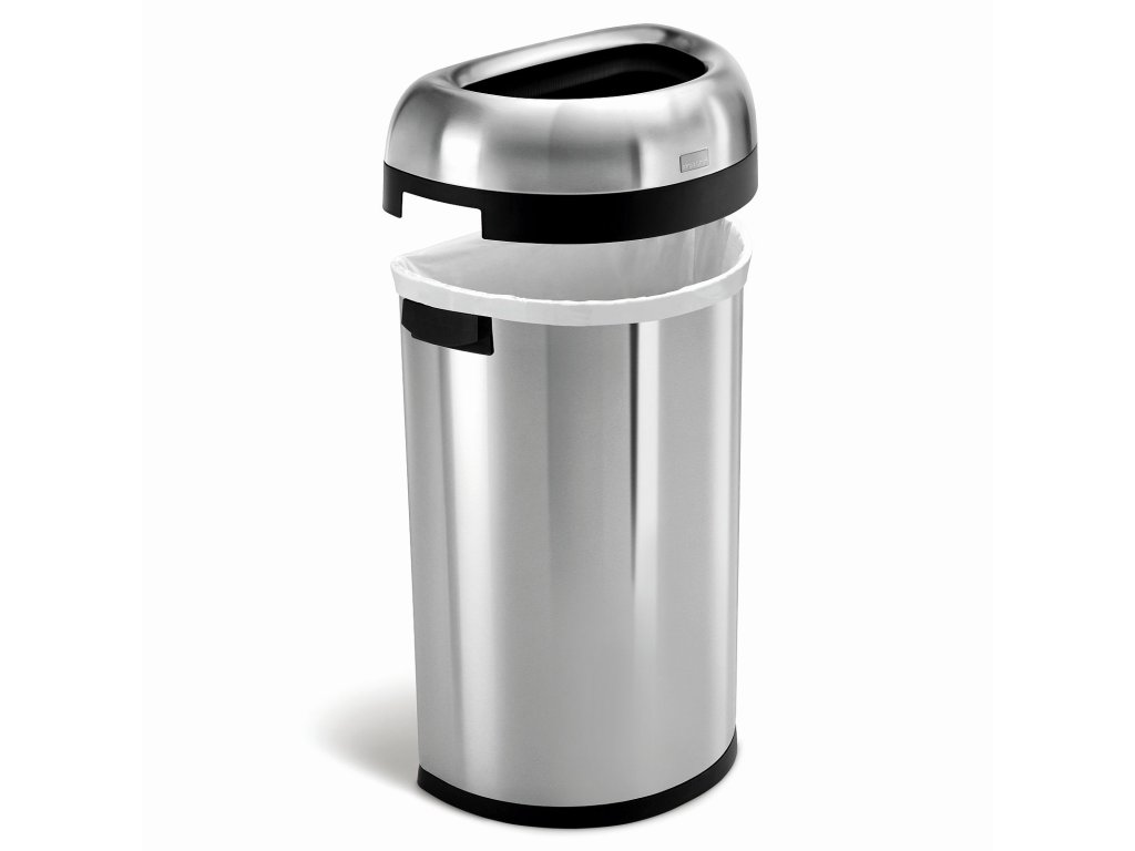 Odpadkový koš Simplehuman pro komerční využití 60 l, půlkulatý, otevřený, kartáčovaná ocel