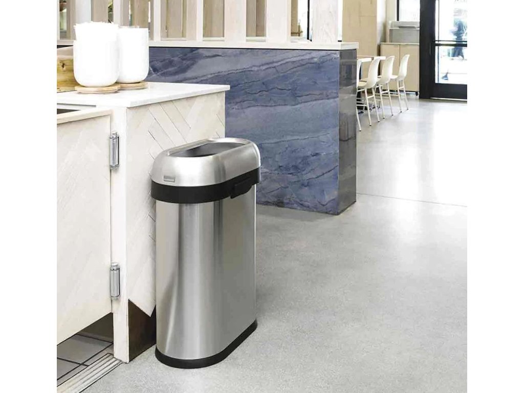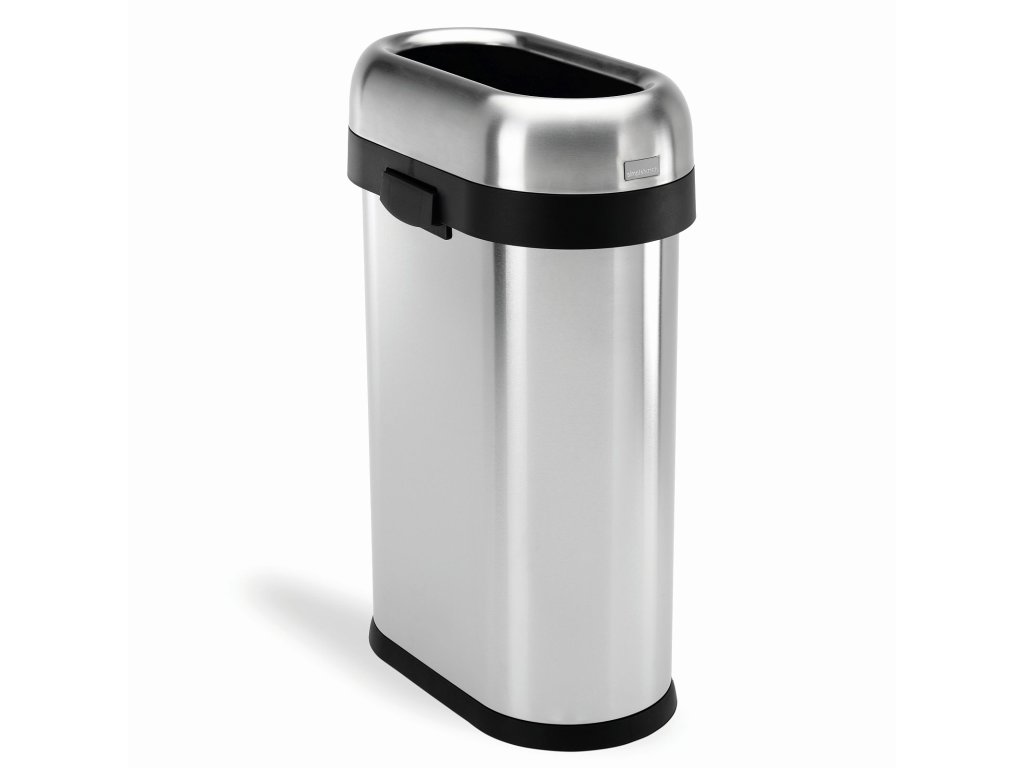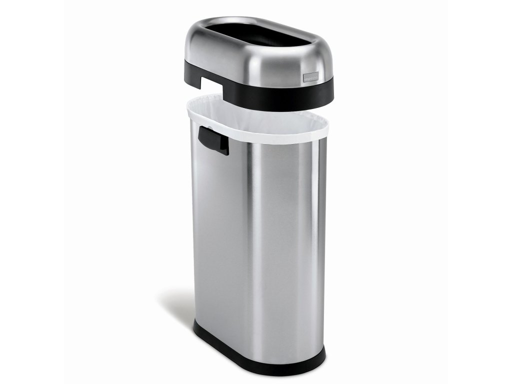 Odpadkový koš Simplehuman pro obchodní prostory – 50 L, SLIM, otevřený, kartáčovaný nerez