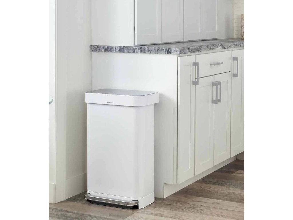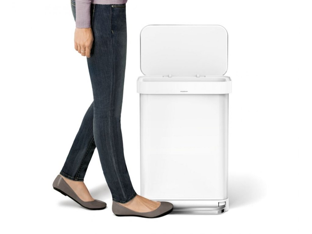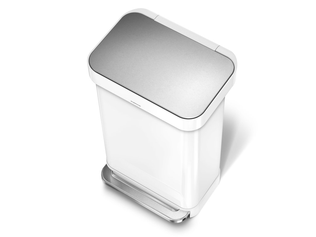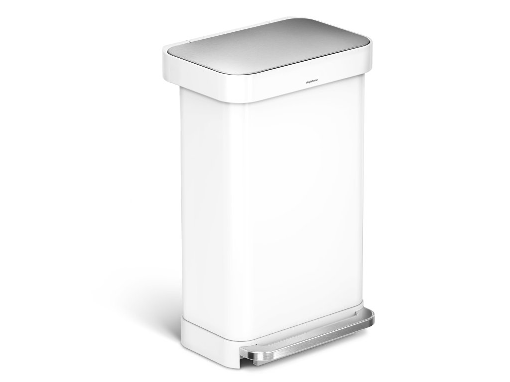Pedálový odpadkový koš Simplehuman – 45 l, bílá ocel, kapsa na sáčky