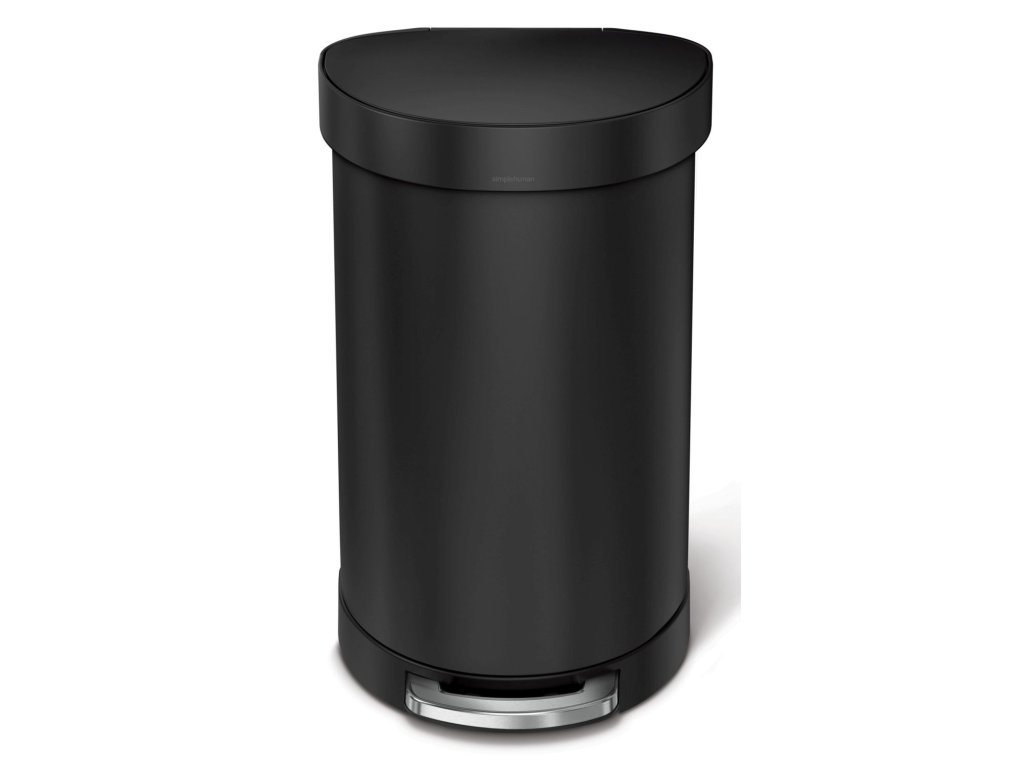 Pedálový odpadkový koš Simplehuman – 45 l, půlkulatý, matná černá ocel, rám na sáčky