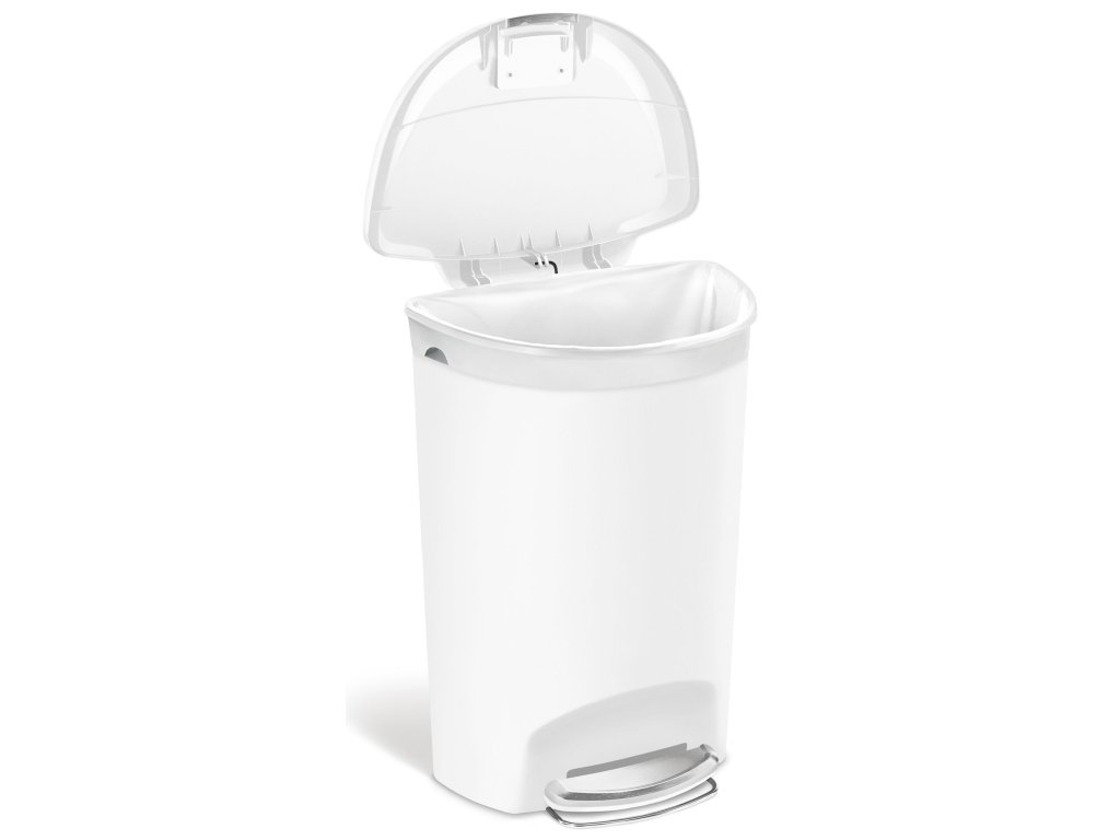 Pedálový odpadkový koš Simplehuman – 50 l, půlkulatý, plast, bílý