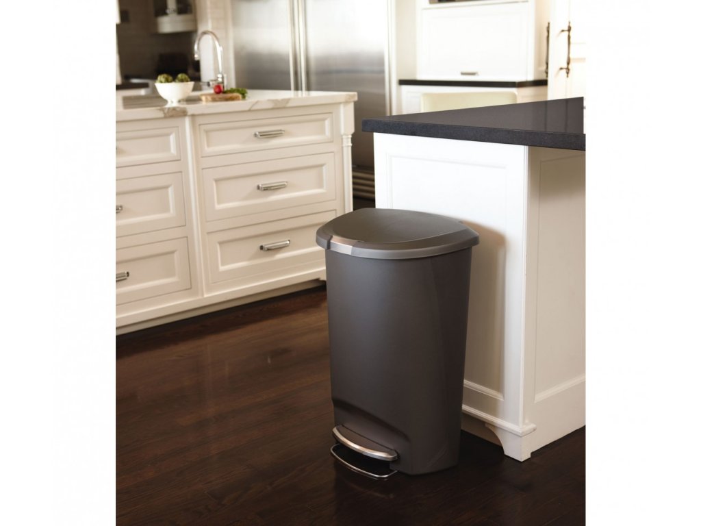 Specifický půlkulatý tvar koše je vhodný do míst s vysokým provozem. Šedá barva je nenápadná, koš se v interiéru snadno schová. Díky velkému objemu je koš vhodný do velkých domácností i jiných prostor.