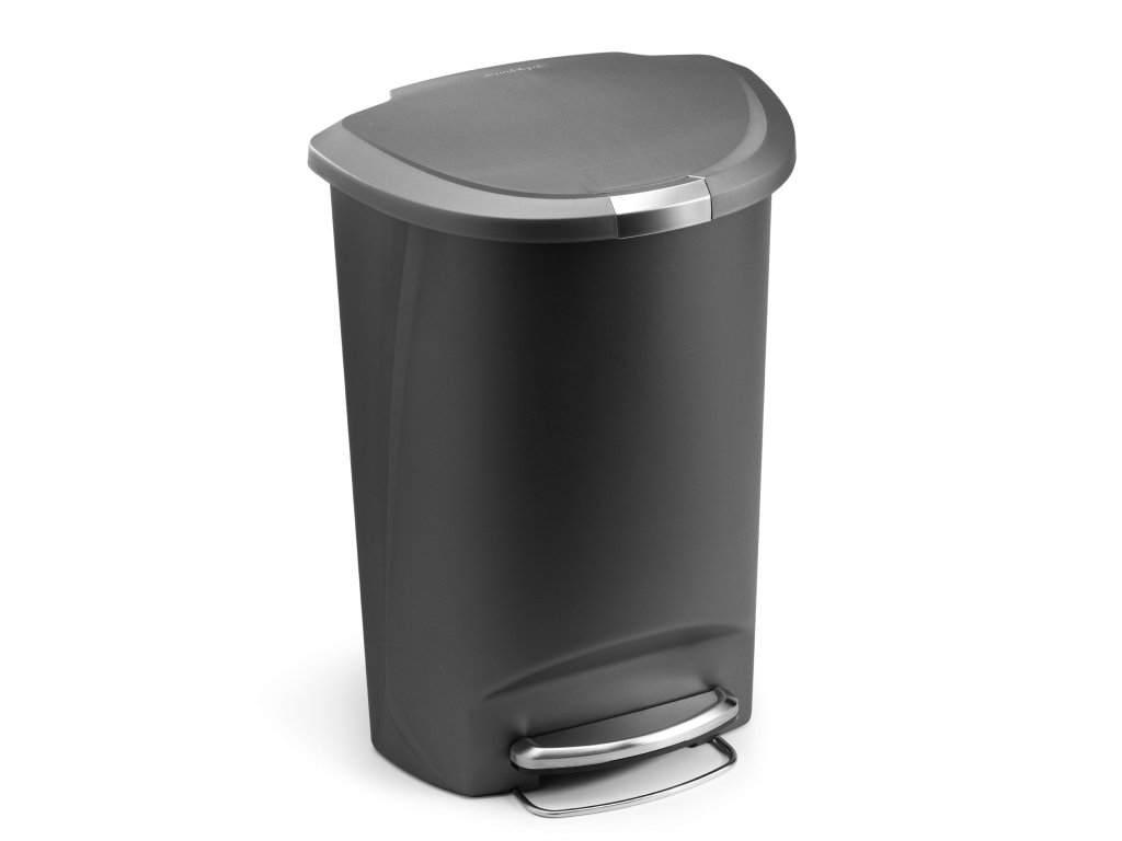 Pedálový odpadkový koš Simplehuman – 50 l, půlkulatý, plast, šedý