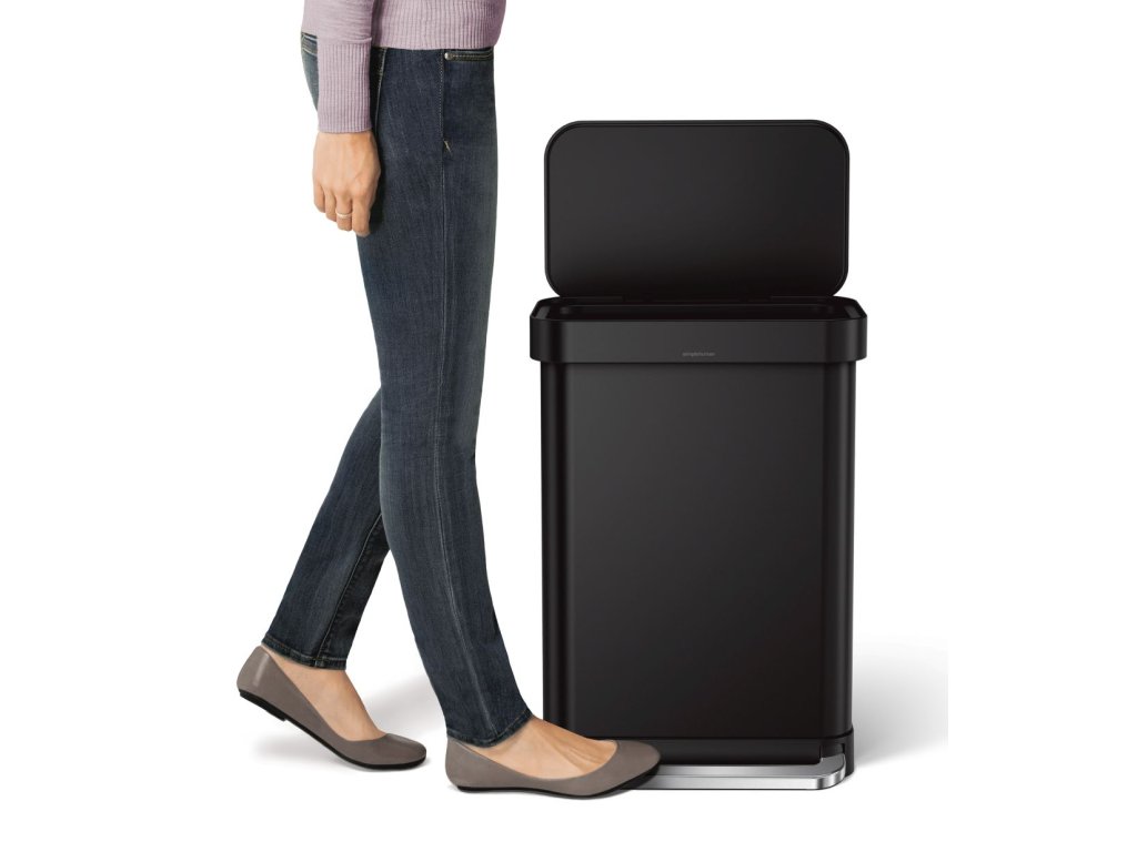 Pedálový odpadkový koš Simplehuman – 55 l, matná černá ocel, kapsa na sáčky