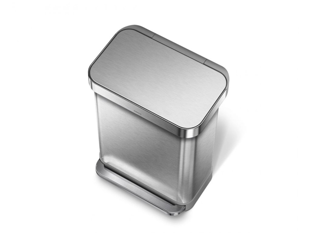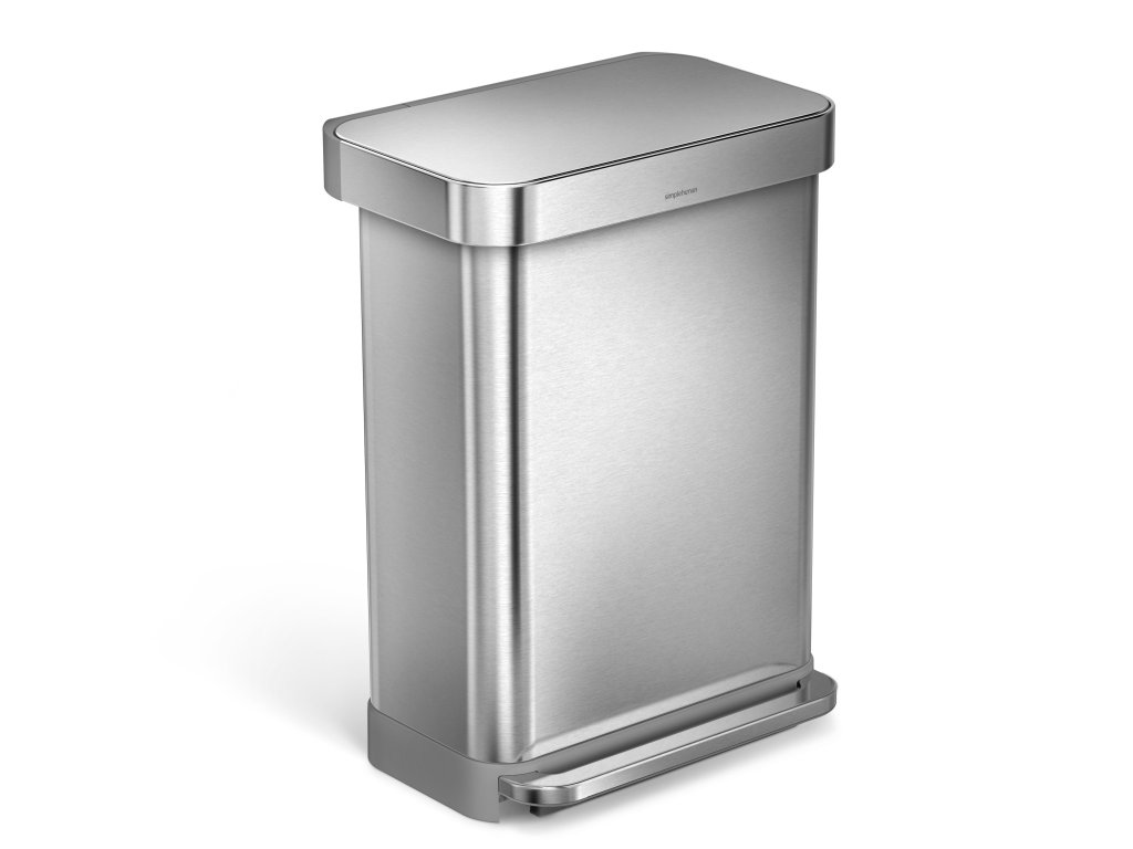 Pedálový odpadkový koš Simplehuman – 55 l, matná ocel, FPP, kapsa na sáčky