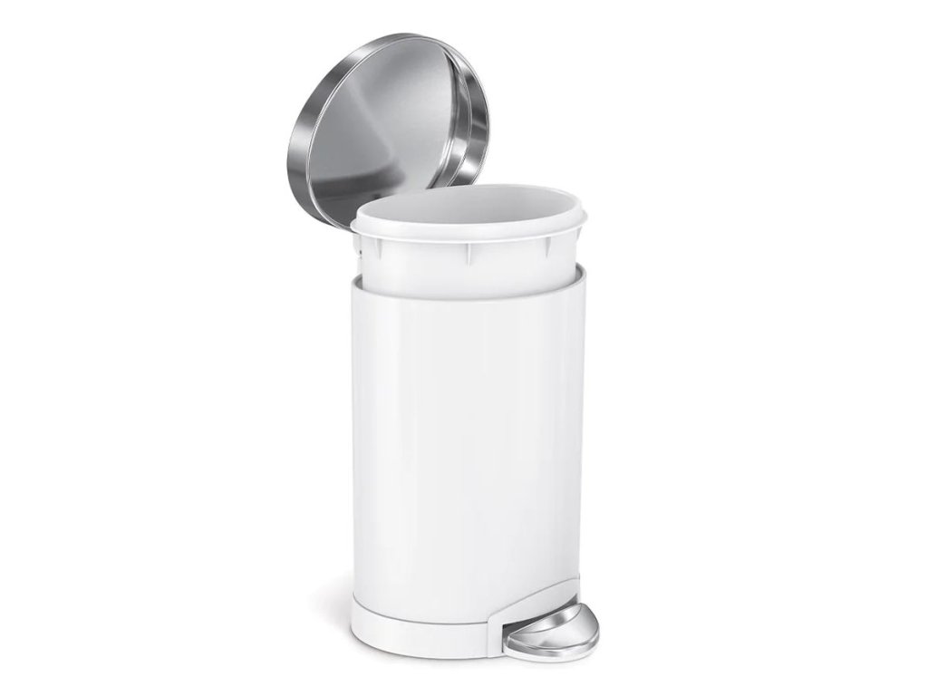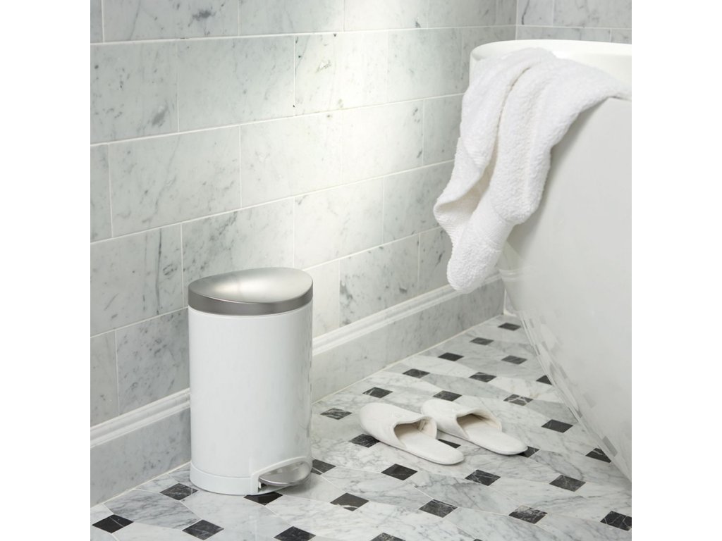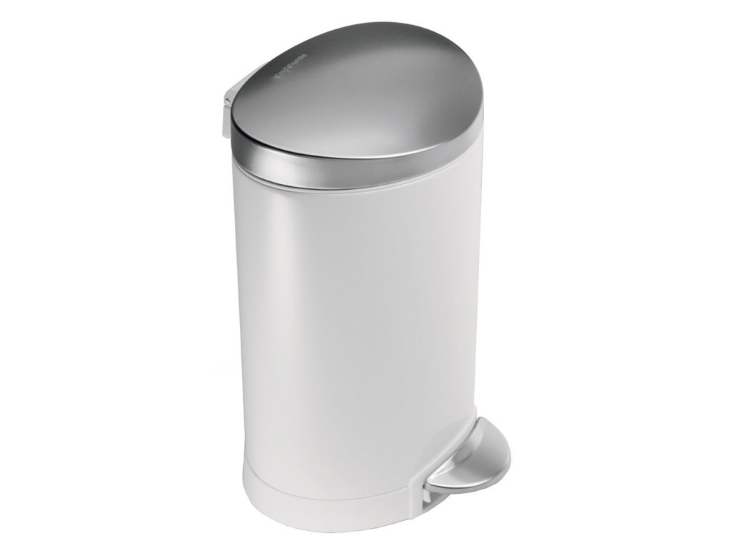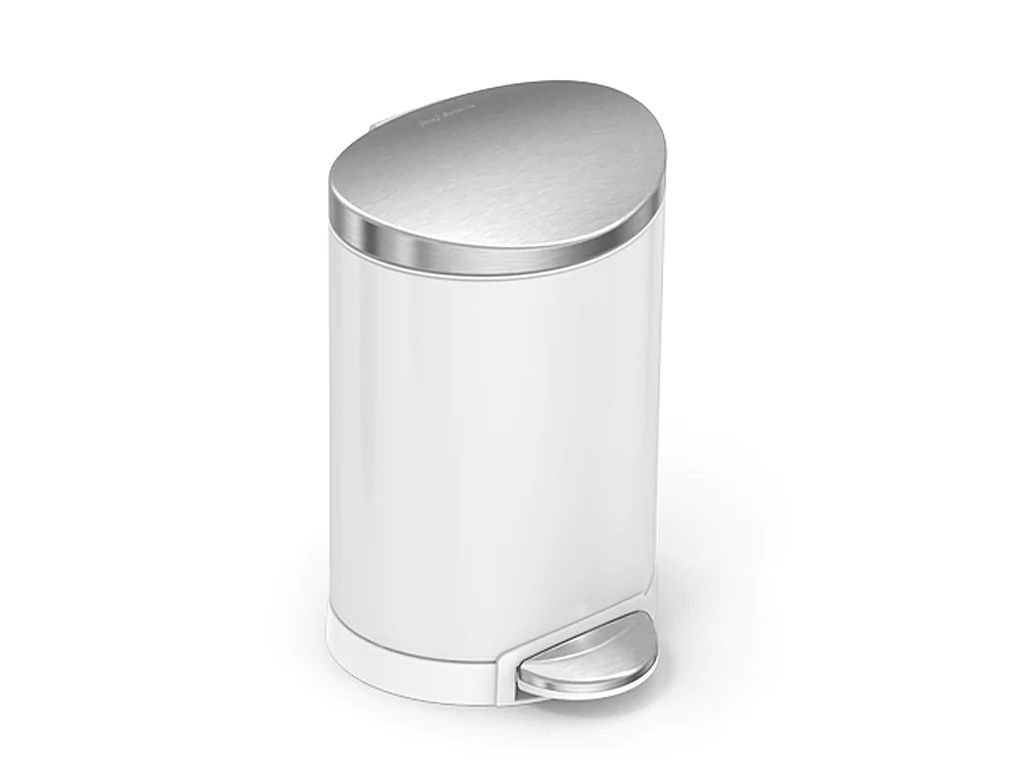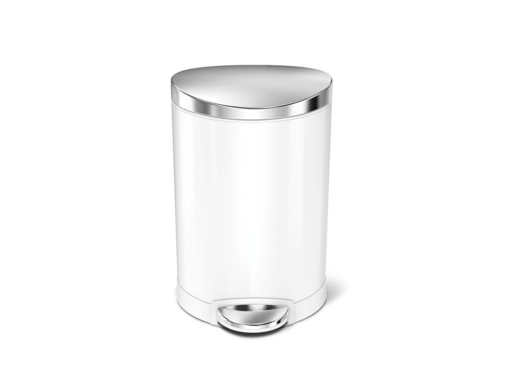 Pedálový odpadkový koš Simplehuman – 6 l, půlkulatý, FPP bílá/víko a pedál matná ocel