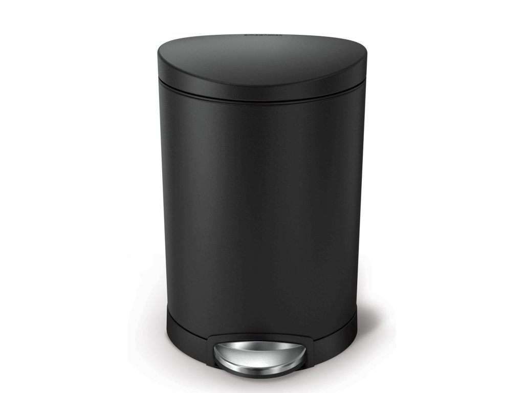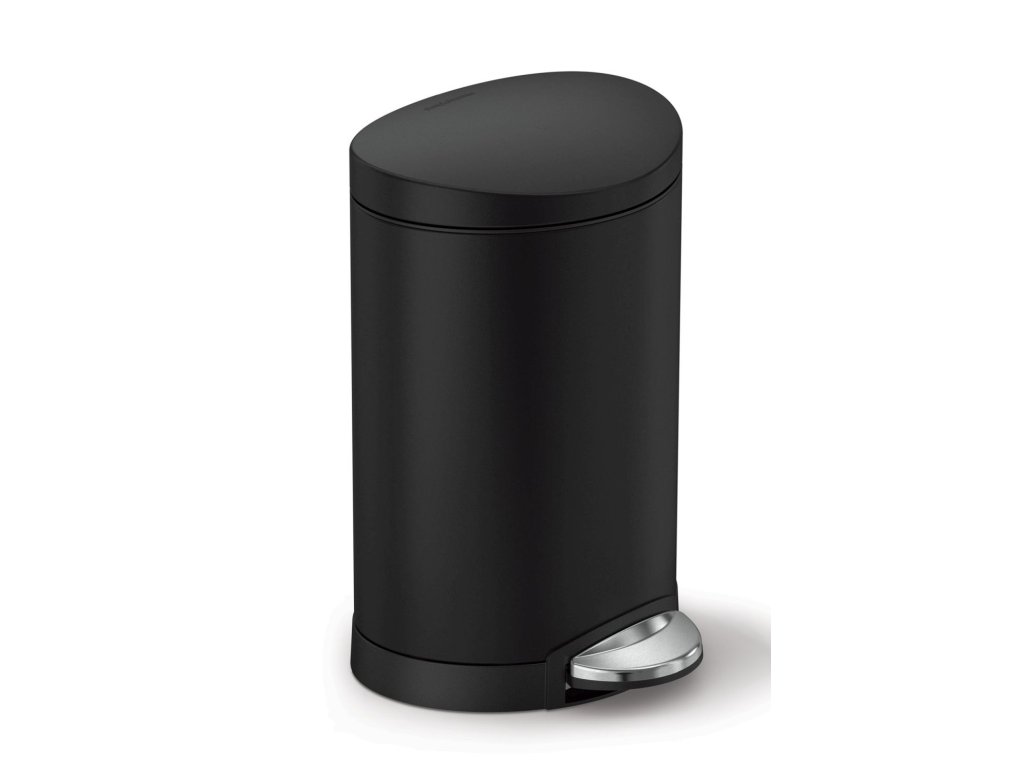 Pedálový odpadkový koš Simplehuman – 6 l, půlkulatý,matná černá ocel,plast