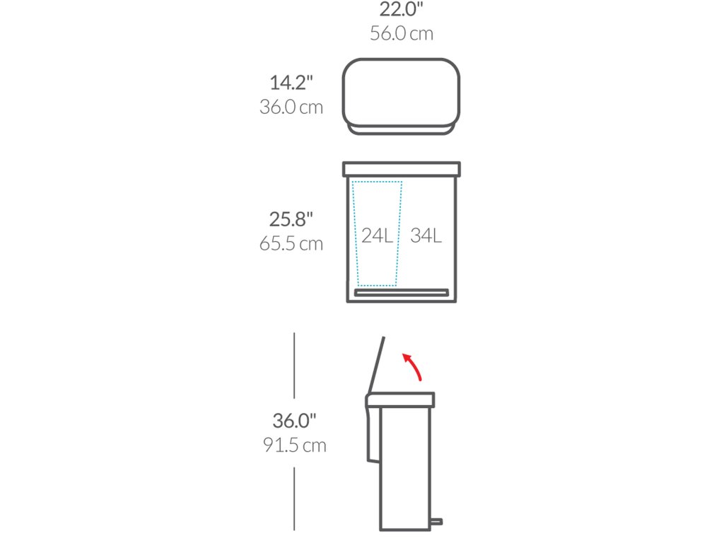 Recyklace odpadu ještě nikdy nebyla tak snadná. Tento model koše Simplehuman v sobě skrývá dva kontejnery na odpad. Jeden slouží pro klasický odpad a druhý pro recyklaci. Kontejner na recyklaci plastu, papíru či skla obsahuje praktický plastový kbelík s kovovým uchem.