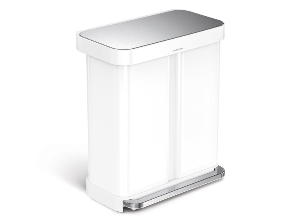 Pedálový odpadkový koš Simplehuman na tříděný odpad – 58l (34/24), bílá ocel