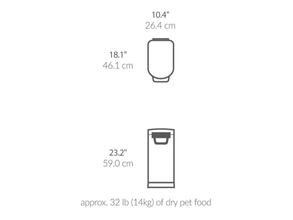 Simplehuman kontejner na 30 L granulí, 14-16 kg suchého krmiva, vzduchotěsný, bílá ocel