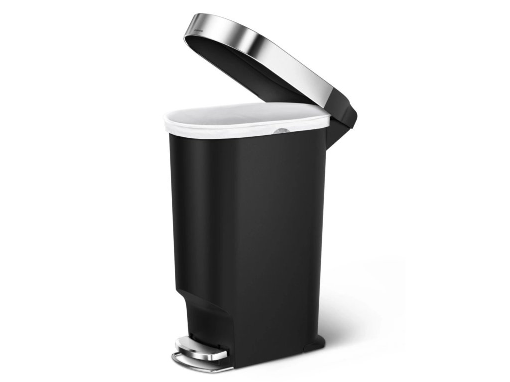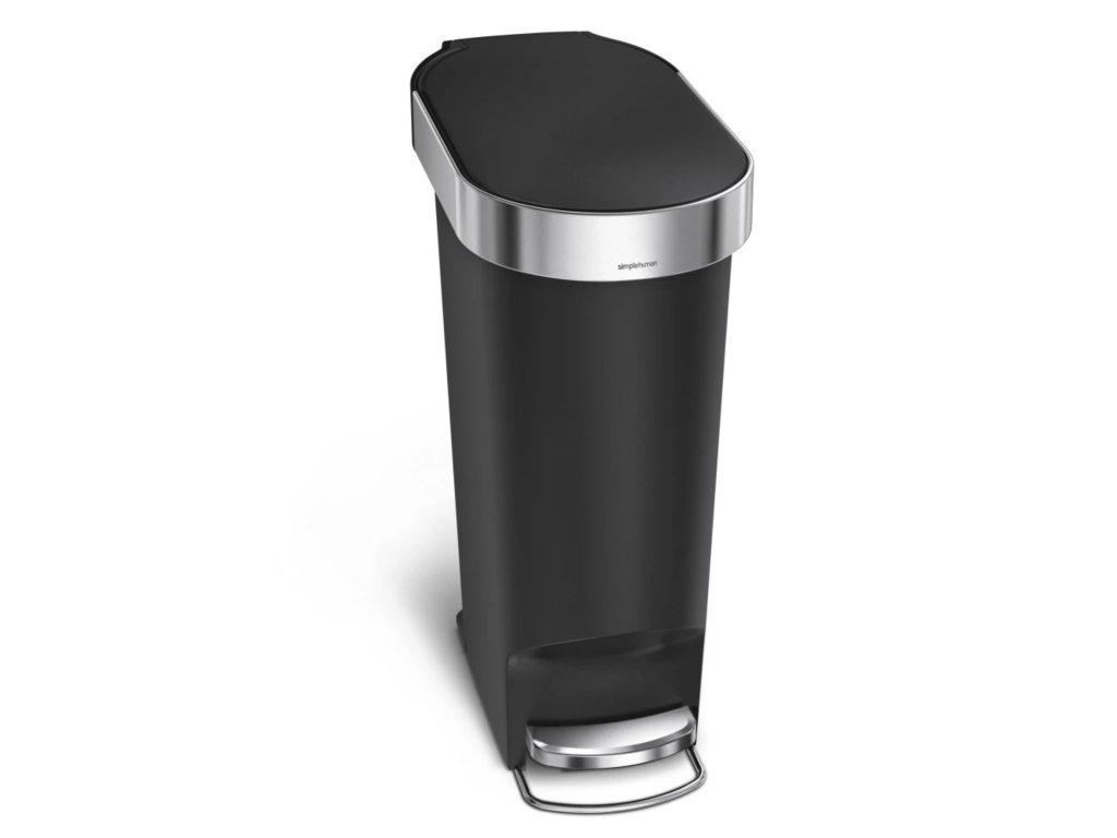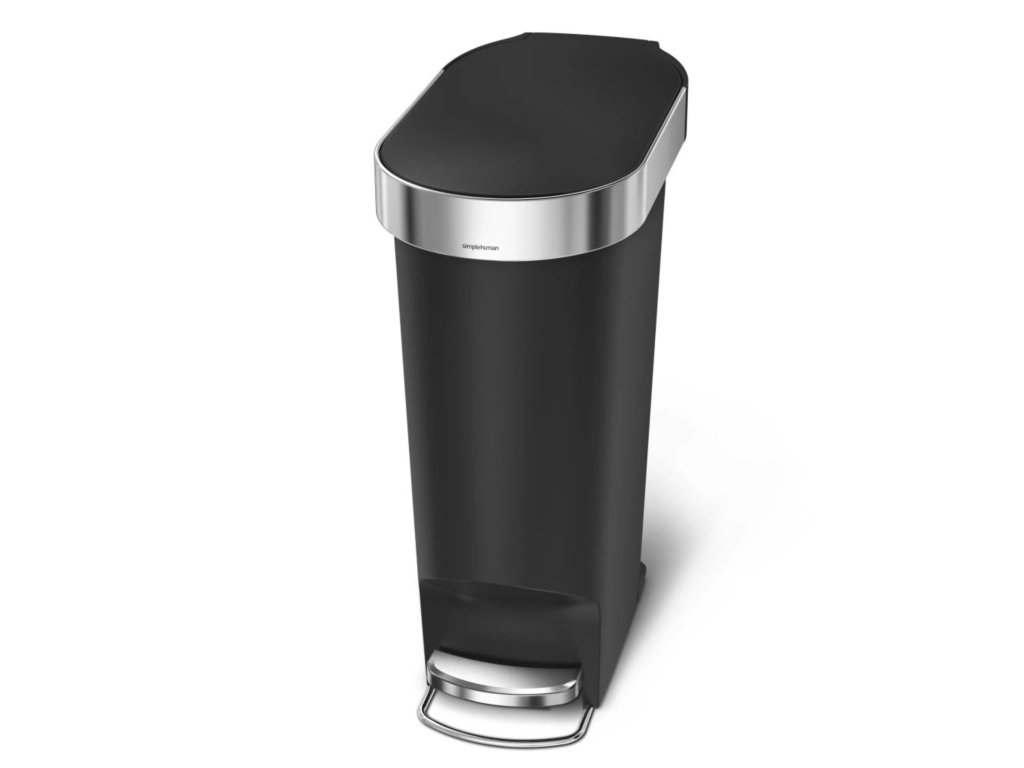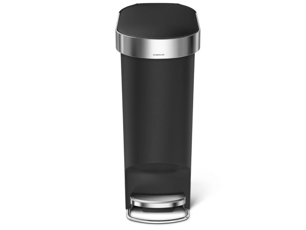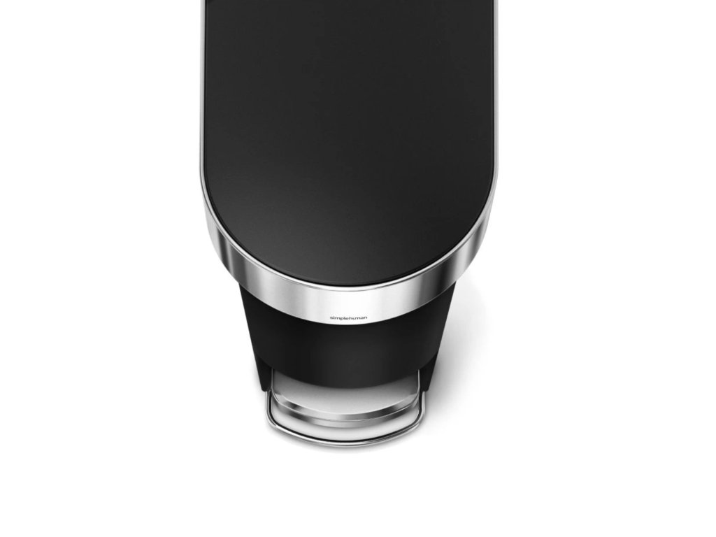 Simplehuman pedálový odpadkový koš, 40 l, černý plast, úzký, oválný, s nerez krytem sáčku