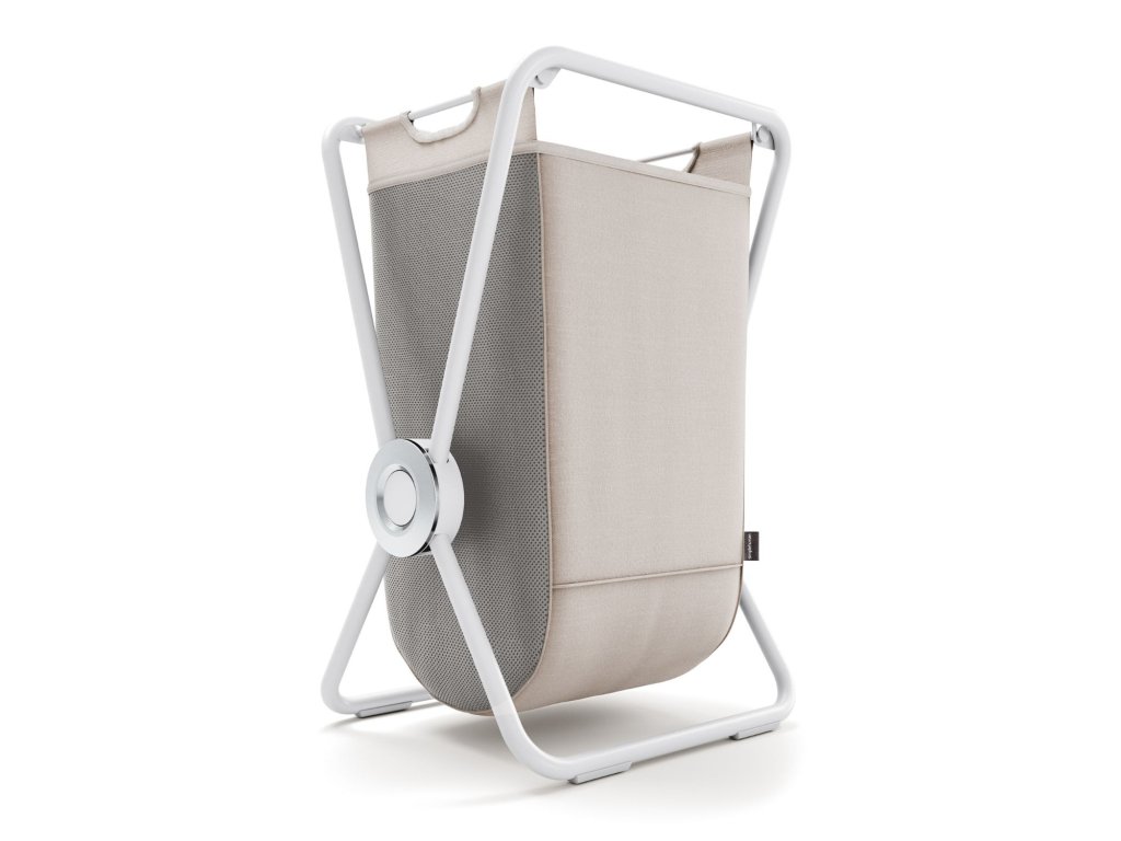 Simplehuman skládací látkový koš na prádlo X-FRAME, bílá ocel, béžový polyester