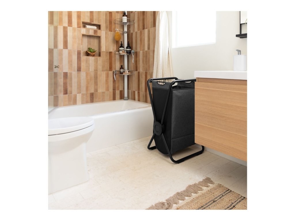 Simplehuman skládací látkový koš na prádlo X-FRAME, černá ocel, šedý polyester