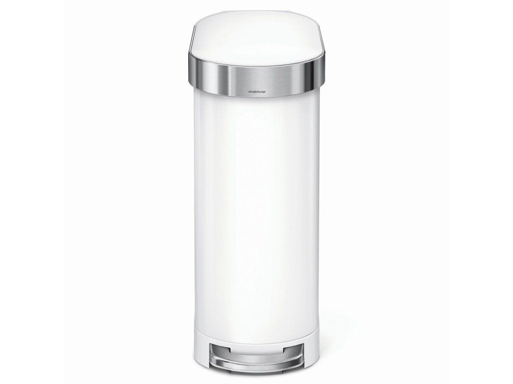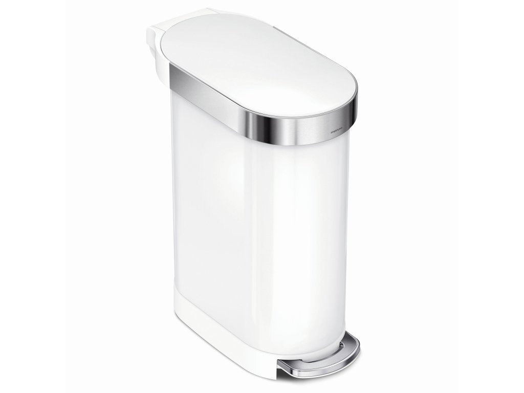 Úzký pedálový odpadkový koš Simplehuman Slim – 45 l, bílá nerez ocel