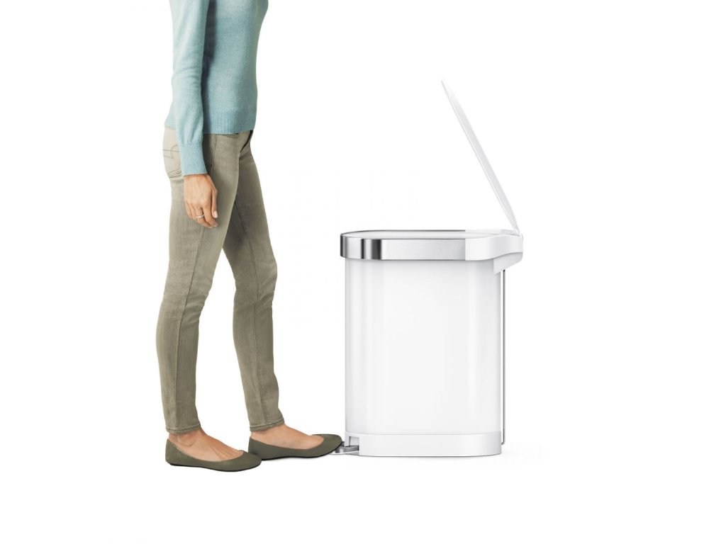 Abyste při vyhazování odpadu nikdy nešlápli vedle, rozhodli se v Simplehuman navrhnout extra široký pedál. Je vyrobený z masivní oceli a odolá víc než 150 000 sešlápnutí. To představuje alespoň 20 otevření denně v průběhu 20 let.