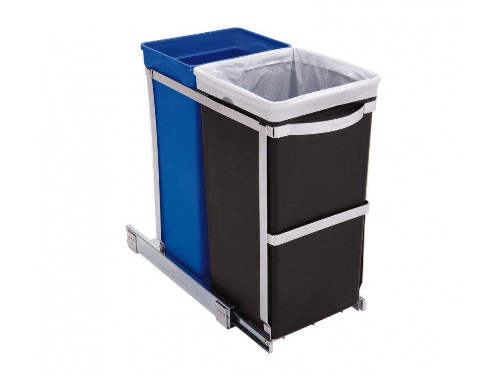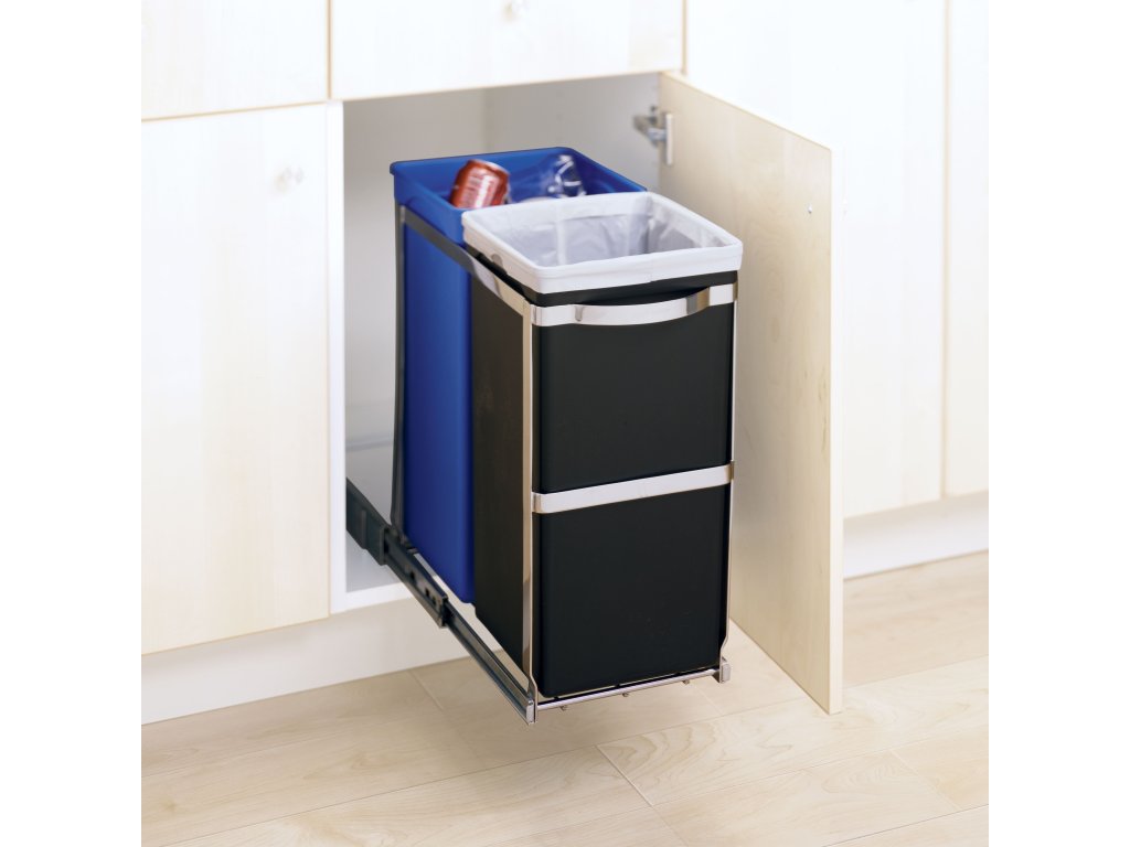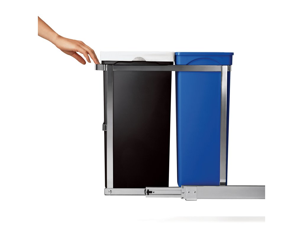 Vestavný koš Simplehuman je vybaven výsuvným systémem, díky kterému je možné oba dva kontejnery vysunout ze skříňky celé ven. Můžete se těšit na rychlý přístup ke koši a pohodlnou manipulaci s odpadky. Velkým plusem jsou kuličková ložiska, která jsou zárukou bezchybného, plynulého a tichého chodu.