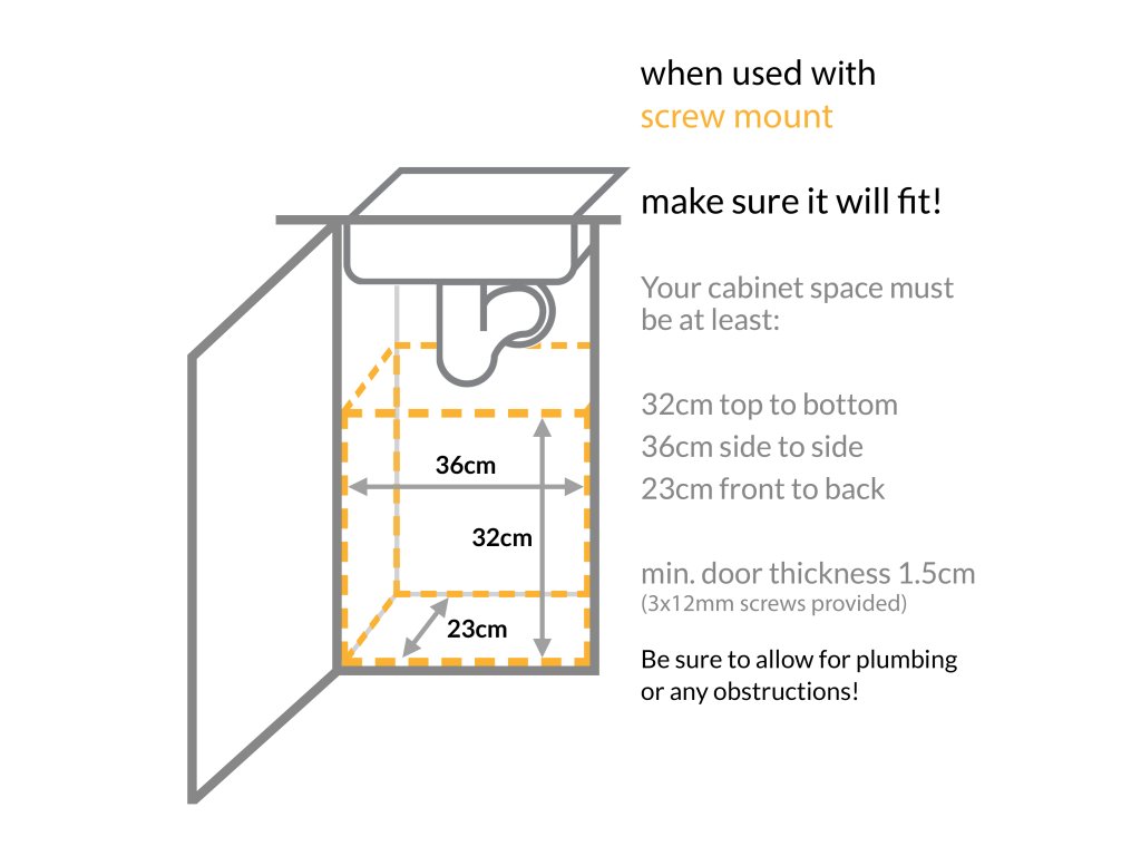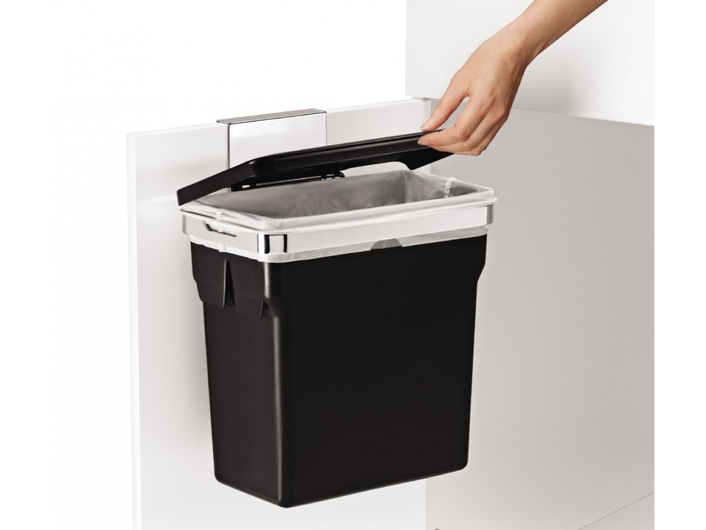Koš má ocelový rám, ve kterém drží, a kterým se snadno pomocí jednoho šroubu zafixuje na vnitřní stranu dvířek. Díky tomuto provedení není v kuchyni vidět, a přesto je vždy po ruce. Koš lze z rámu celý vyjmout. Usnadní to manipulaci s odpadky i čištění koše.