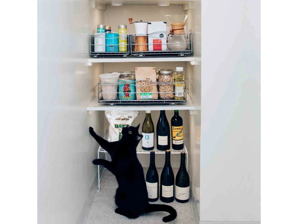 Uchopte ocelovou rukojeť a vytáhněte snadno a rychle organizér ze skříně.