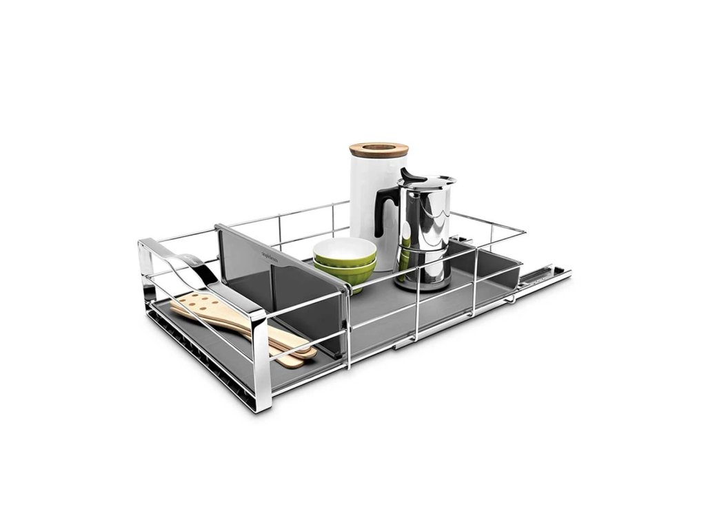 Výsuvný organizér do skříňky Simplehuman s masivním rámem z nerez oceli, šířka 35 cm