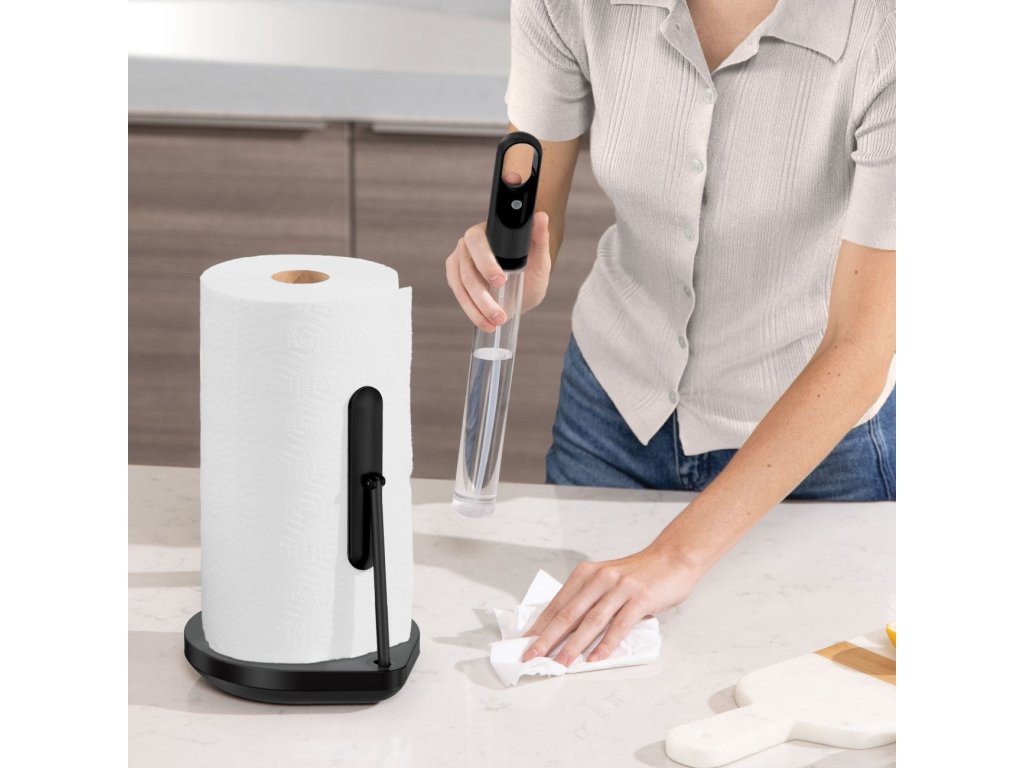 Zásobník papírových utěrek + pumpička na čistící přípravek Simplehuman, matná černá ocel