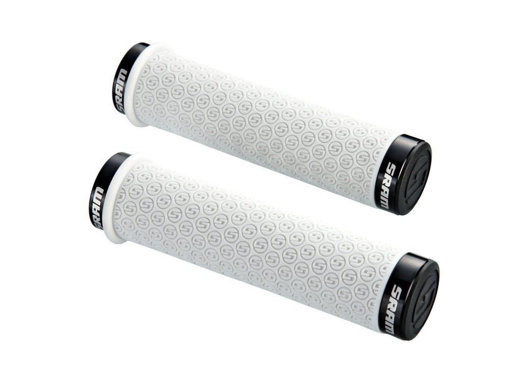 SRAM DH Silicone Locking gripy bílé s objímkami a s koncovkami řidítek
