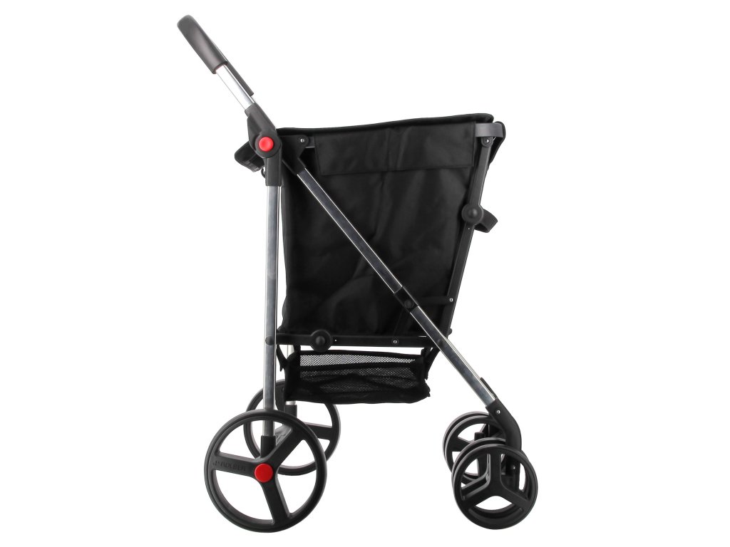 Na první pohled odlišný design řadí model BASKET do samostatné kategorie. Jedná se totiž o nákupní košík na kolečkách, který vyniká především svojí nadstandardní kapacitou a důmyslnou funkčností. K dokonalé ovladatelnosti košíku slouží 2 velká zadní kola a 2 dvojitá přední kola, která se otáčí o 360°. Zadní kola jsou vybavena rychloupínacím systémem a lze je pouhým stiskem červeného bodu jednoduše sundat. Ke snadné manipulaci přispívá také nožní opěrka, která slouží k pohodlnému zdvihnutí předních kol v případě zdolávání obrubníku či jiné překážky.
