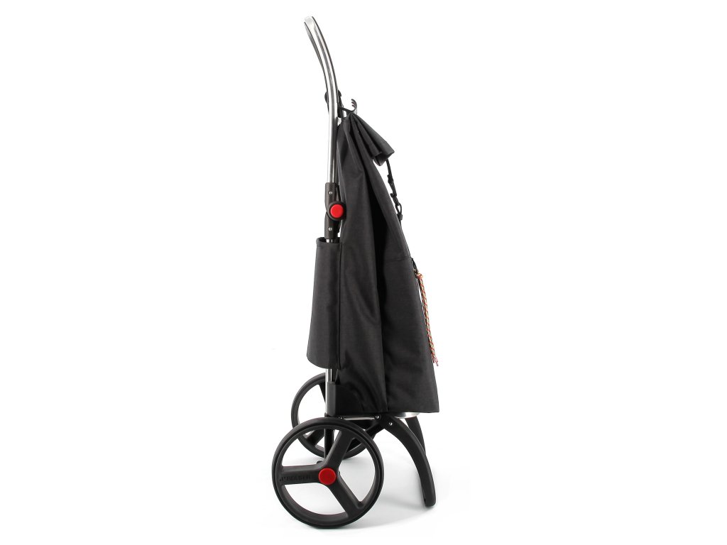 Mezi nejpraktičtější podvozky Rolser patří bezesporu Logic RSG, který vyniká hned několika užitečnými vlastnostmi. Tou hlavní je určitě dvojitý skládací systém, díky němuž lze nejen složit přední oporu, která slouží k odstavení tašky do prostoru, ale také samotnou konstrukci. Pomocí bočních ovladačů (červené body) se totiž snadno složí na polovinu a lze ji pak jednoduše uložit nebo převážet v autě. Další praktickou vychytávkou je integrovaný úchyt, který slouží pro zavěšení tašky na nákupní vozík a není tak nutné tašku nikde odkládat. Úchyt je zároveň opatřem drobnými háčky, které při provozu slouží k zavěšení klasických tašek, sáčků apod. Ergonomické protiskluzové držadlo zajišťuje komfortní úchop a přispívá tak ke snadné manipulaci. Výška konstrukce 108 cm je vhodná i pro uživatele vyšší postavy.