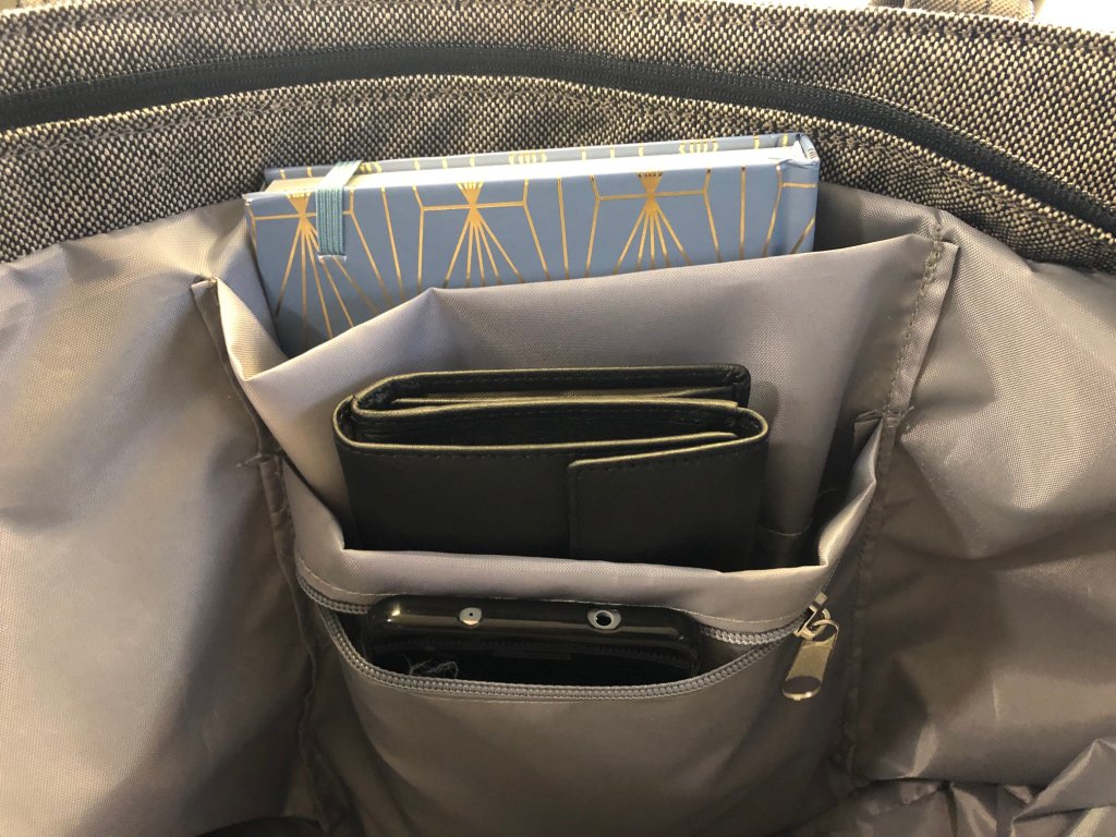 Velký vnitřní prostor tašky Ecobag je vybaven dvěma malými otevřenými kapsami a jednou kapsičkou na zip. Hlavní komora je po celé délce uzavíratelná na zip, aby chránil její obsah před případnými nenechavci. Pohodlné nošení zajišťuje široký nastavitelný popruh, který lze upravit do podoby „crossbody“, tzn. že tašku lze nosit nejen klasicky, ale také křížem přes celé tělo. Popruh je na tašce připevněn pomocí designových oček a karabin, tudíž ho lze snadno odepnout a samotnou tašku vyprat.