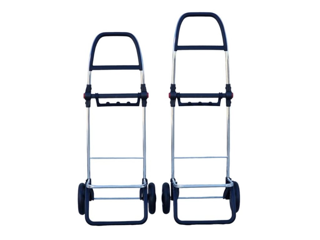 Tašky na kolečkách z řady 955 jsou dokonalou kombinací stávajících modelů I-Max a extralehkého sníženého podvozku. Tento model s výškou 95,5 cm byl vytvořen pro osoby menšího vzrůstu, pro které je standardní rám příliš vysoký. Lehký hliníkový rám LOGIC se dvěma koly střední velikosti má hned několik praktických vlastností. Tou hlavní je bezesporu dvojitý skládací systém. Díky němu lze nejen složit přední oporu, která slouží k odstavení tašky do prostoru, ale také samotný rám. Pomocí bočních ovladačů (červené body) se totiž snadno složí na polovinu a lze ji pak jednoduše uložit nebo převážet v autě. Další praktickou funkcí je adaptabilní háček, který slouží pro zavěšení tašky na nákupní vozík a není tak nutné tašku nikde odkládat. Háček lze použít také k zavěšení běžných tašek či sáčků. Ergonomické protiskluzové držadlo zajišťuje komfortní úchop a přispívá ke snadné manipulaci.