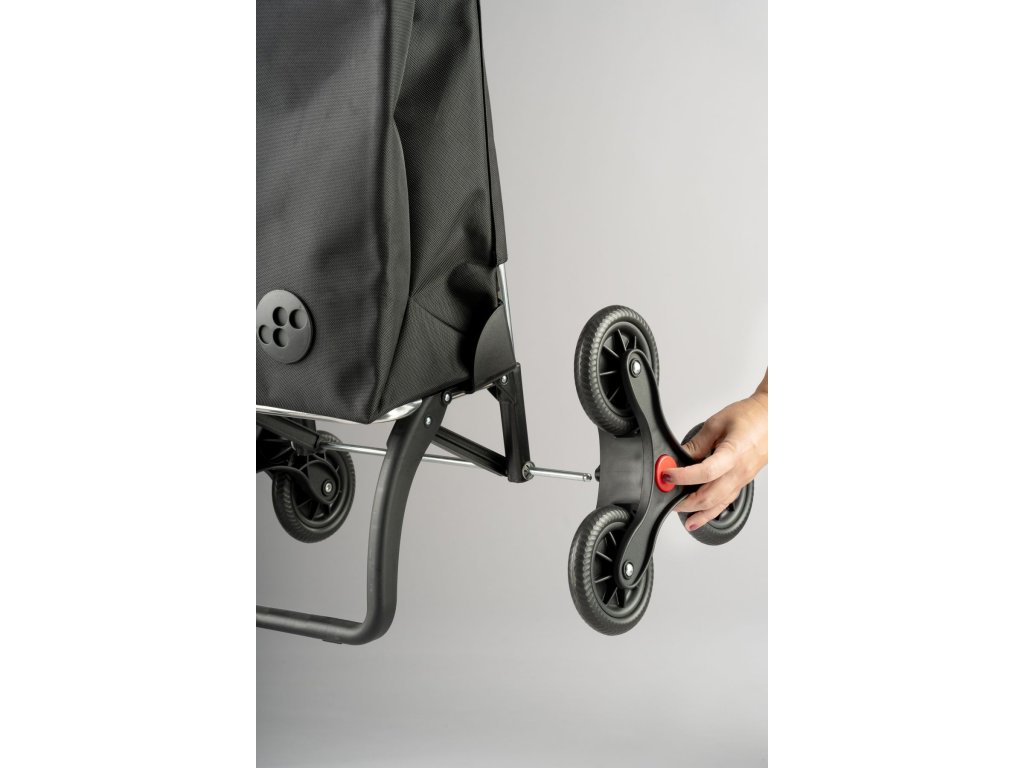 Podvozek je vybaven 6 kolečky menší velikosti, která jsou uspořádána do trojúhelníku. Otočný mechanismus umožňuje plynulou rotaci všech koleček a tím zajišťuje hladký a nepřerušovaný pohyb do schodů. Při provozu na rovném povrchu jsou do jízdy zapojena pouze čtyři kolečka, která zajistí, že se hmotnost nákladu rovnoměrně rozloží do celého podvozku a nezatíží tak vaše záda.