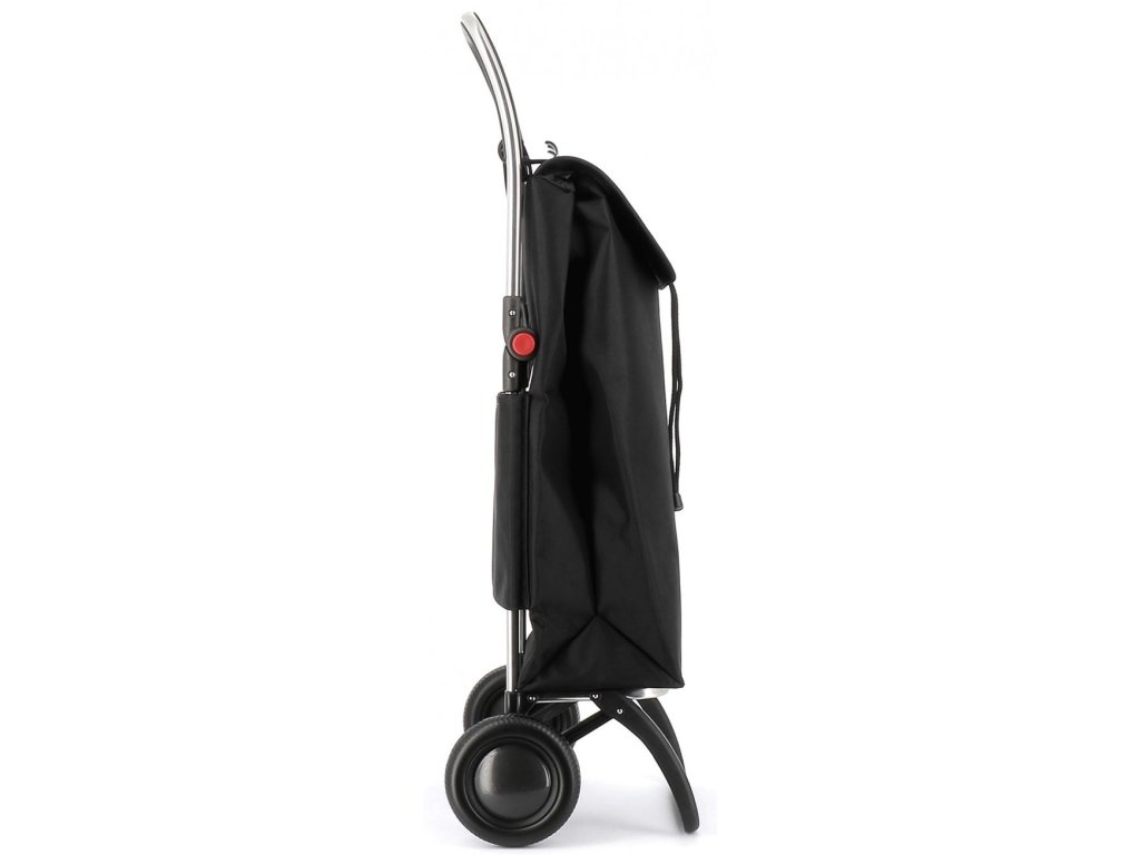 Lehká hliníková kostrukce logic s dvěma koly střední velikosti má hned několik praktických vlastností. Tou hlavní je bezesporu dvojitý skládací systém. Díky němu lze nejen složit přední oporu, která slouží k odstavení tašky do prostoru, ale také samotnou konstrukci. Pomocí bočních ovladačů (červené body) se totiž snadno složí na polovinu a lze ji pak jednoduše uložit nebo převážet v autě. Další praktickou vychytávkou je integrovaný úchyt, který slouží pro zavěšení tašky na nákupní vozík a není tak nutné tašku nikde odkládat. Úchyt je zároveň opatřem drobnými háčky, které při provozu slouží k zavěšení klasických tašek či sáčků. Ergonomické protiskluzové držadlo zajišťuje komfortní úchop a přispívá tak ke snadné manipulaci. Výška konstrukce 104,5 cm je vhodná i pro uživatele vyšší postavy.