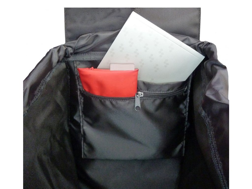 Hlavní úložný prostor tašky I-Max nabízí objem 43 L a maximální nosnost až 40 Kg, avšak doporučené zatížení je 25 kg. Uvnitř nechybí menší dvojitá kapsa na zip pro bezpečné uložení osobních věcí a jiných na drobností. Z vnější strany lze pak využít větší kapsu taktéž uzavíratelnou pomocí zipu. Zavírání tašky je řešeno stahovací tkaničkou s pojistkou, která se provléká otvorem v klopě. Taška je na vozík navlečena přes textilní tunel a v horní části připevněna suchým zipem, lze ji tedy snadno odepnout a vyčistit.