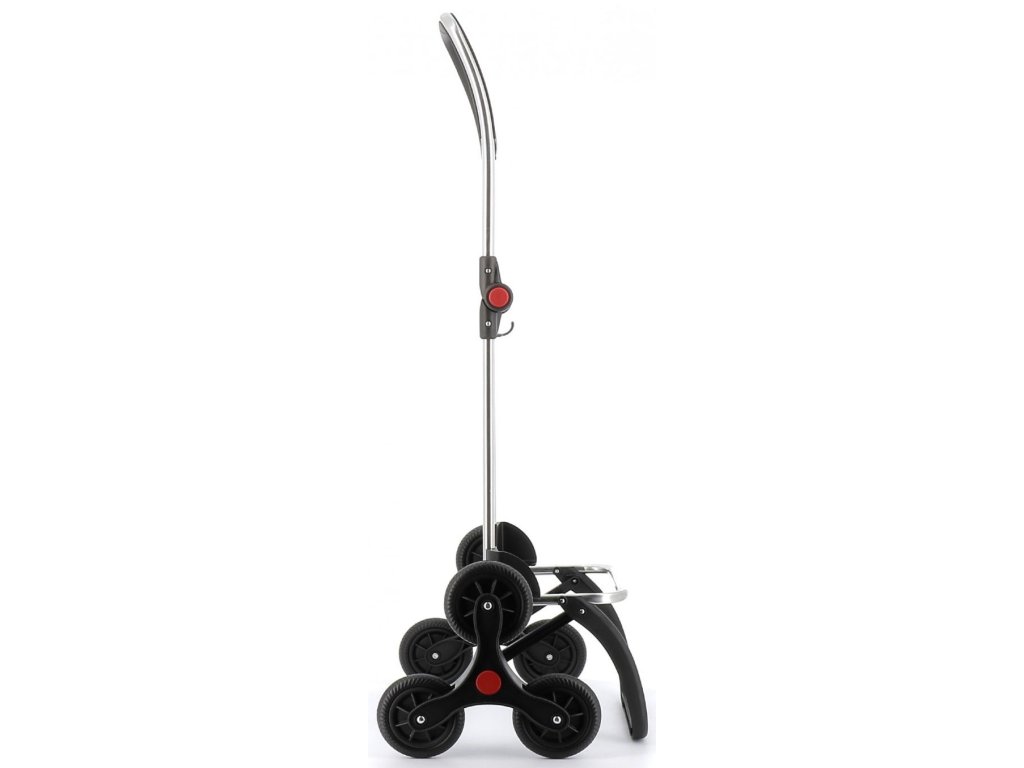 Označení „logic“ předznamenává, že se jedná o podvozek s duálním skládacím systémem, díky němuž lze složit nejen přední oporu, ale také samotnou konstrukci. Pomocí bočních ovladačů (červené body) se totiž snadno složí na polovinu a lze ji pak jednoduše uložit nebo převážet v autě. Další praktickou vychytávkou je integrovaný úchyt, který slouží pro zavěšení tašky na nákupní vozík a není tak nutné tašku nikde odkládat. Úchyt je zároveň opatřem drobnými háčky, které při provozu slouží k zavěšení klasických tašek či sáčků. Ergonomické protiskluzové držadlo zajišťuje komfortní úchop a přispívá tak ke snadné manipulaci. Výška konstrukce 108,5 cm je vhodná i pro uživatele vyšší postavy.