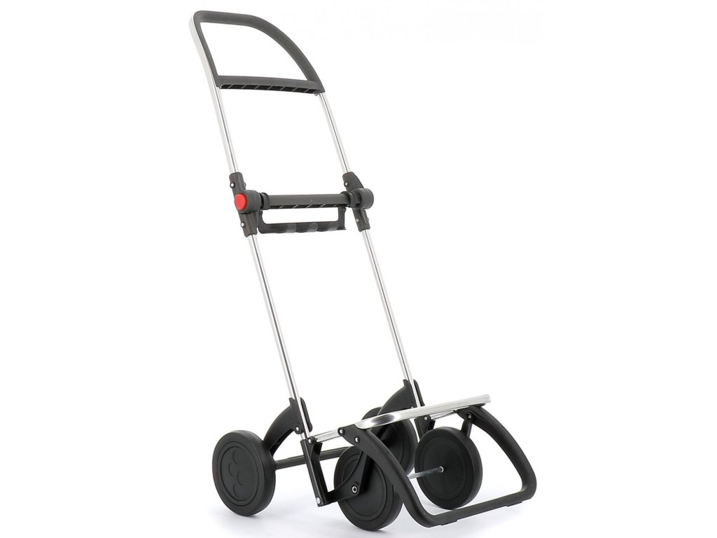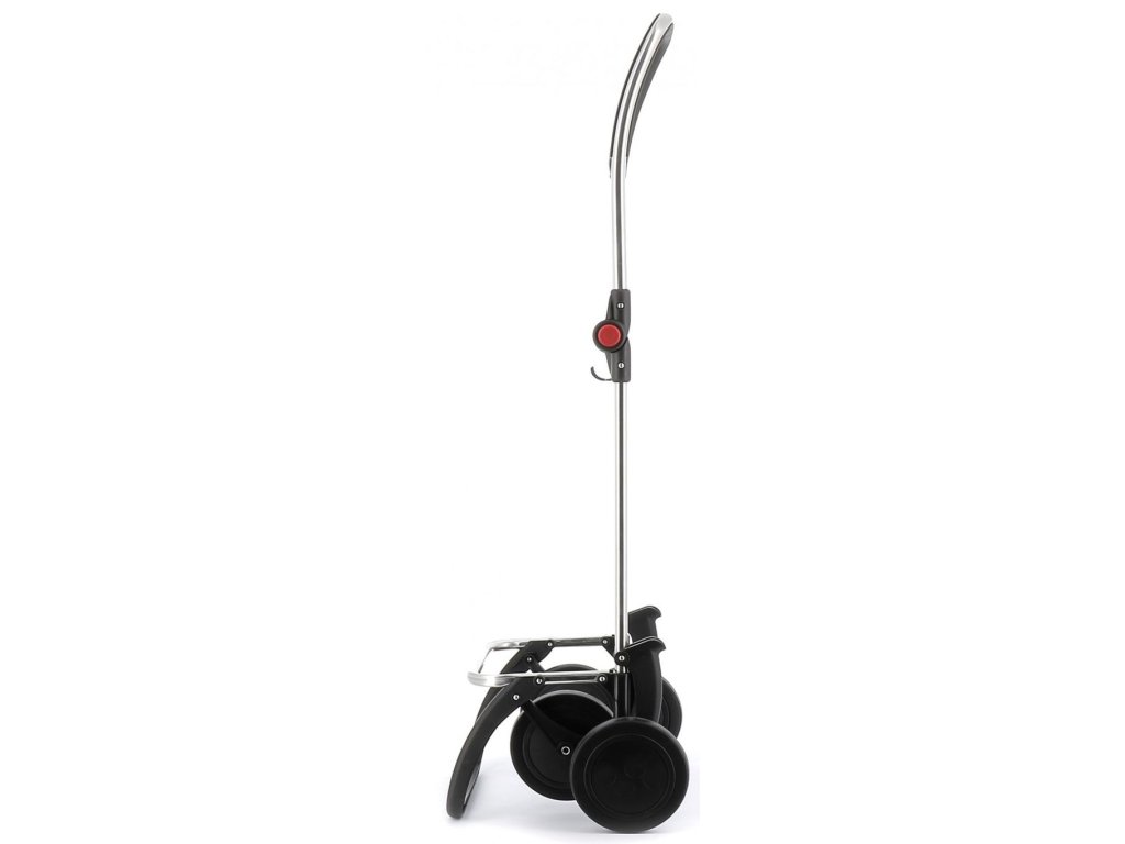 Mezi nejpraktičtější podvozky Rolser patří bezesporu Logic, který vyniká hned několika užitečnými vlastnostmi. Tou hlavní je určitě dvojitý skládací systém, díky němuž lze nejen složit přední oporu, která slouží k odstavení tašky do prostoru, ale také samotnou konstrukci. Pomocí bočních ovladačů (červené body) se totiž snadno složí na polovinu a lze ji pak jednoduše uložit nebo převážet v autě. Dalším praktickým doplňkem je integrovaný úchyt pro zavěšení tašky na nákupní vozík a není tak nutné tašku nikde odkládat. Úchyt je opatřen několika drobnými háčky, na které lze zavěsit běžnou nákupní tašku nebo sáček, tedy v případě, že úchyt zrovna nevisí na nákupním vozíku. Ergonomické protiskluzové držadlo zajišťuje komfortní úchop a přispívá tak ke snadné manipulaci. Výška konstrukce 108 cm je vhodná i pro uživatele vyšší postavy.
