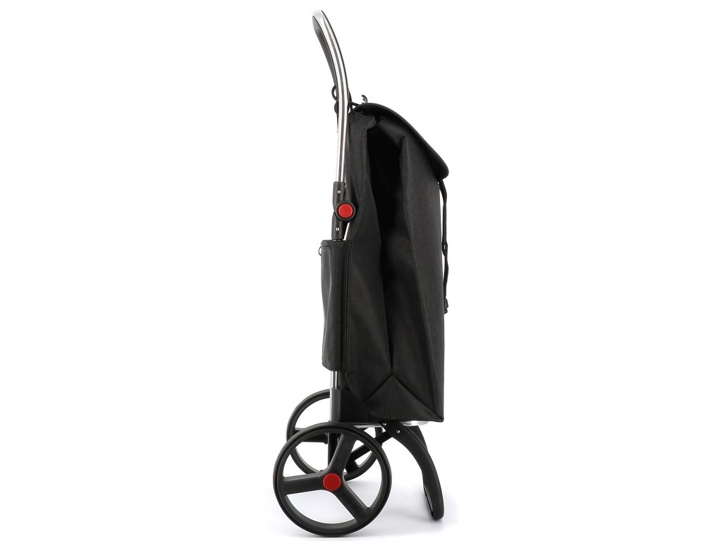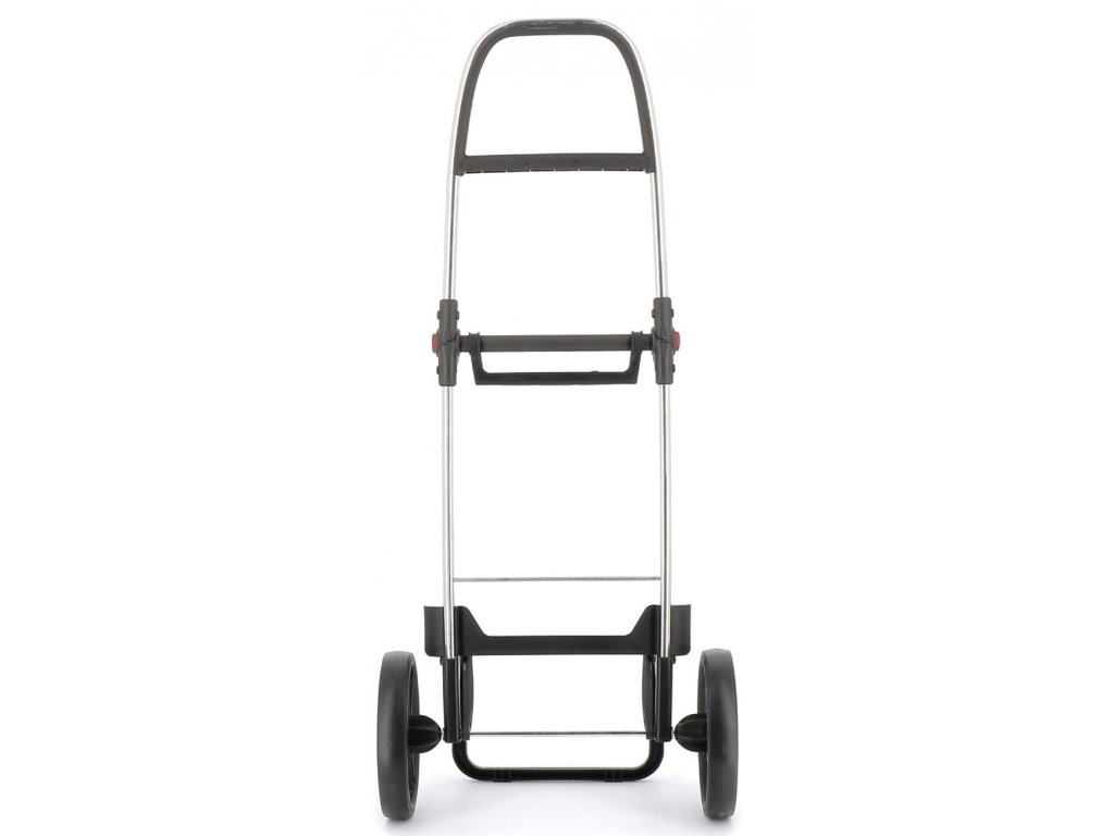 Mezi nejpraktičtější podvozky Rolser patří bezesporu Logic RSG, který vyniká hned několika užitečnými vlastnostmi. Tou hlavní je určitě dvojitý skládací systém, díky němuž lze složit nejen přední oporu, která slouží k odstavení tašky do prostoru, ale také samotnou konstrukci. Pomocí bočních ovladačů (červené body) se totiž snadno složí na polovinu a lze ji pak jednoduše uložit nebo převážet v autě. Další praktickou vychytávkou je integrovaný úchyt, který slouží pro zavěšení tašky na nákupní vozík a není tak nutné tašku nikde odkládat. Úchyt je zároveň opatřem drobnými háčky, které při provozu slouží k zavěšení klasických tašek, sáčků apod. Ergonomické protiskluzové držadlo zajišťuje komfortní úchop a přispívá tak ke snadné manipulaci. Výška konstrukce 108 cm je vhodná i pro uživatele vyšší postavy.