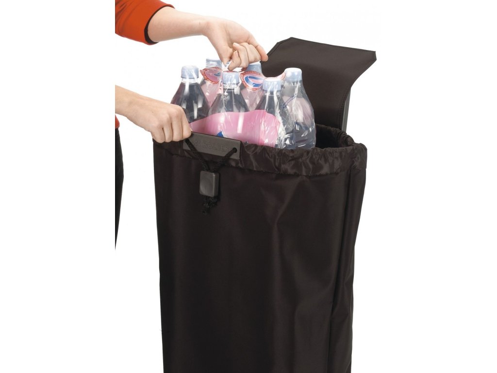 Hlavní úložný prostor tašky I-Max v atraktivním provedení Tweed nabízí objem 43 L a maximální nosnost až 50 Kg, avšak doporučené zatížení je 25 kg. Ve výbavě nechybí vnitřní dvojitá kapsa na zip, určená pro uložení osobních věcí a jiných drobností. Z vnější strany je k dispozici velká kapsa taktéž na zip. Zavírání tašky je řešeno stahovací tkaničkou s pojistkou, která se provléká klopou. Taška je na vozík navlečena přes velké textilní poutko a v horní části připevněna suchým zipem, lze ji tedy snadno odepnout a vyčistit.
