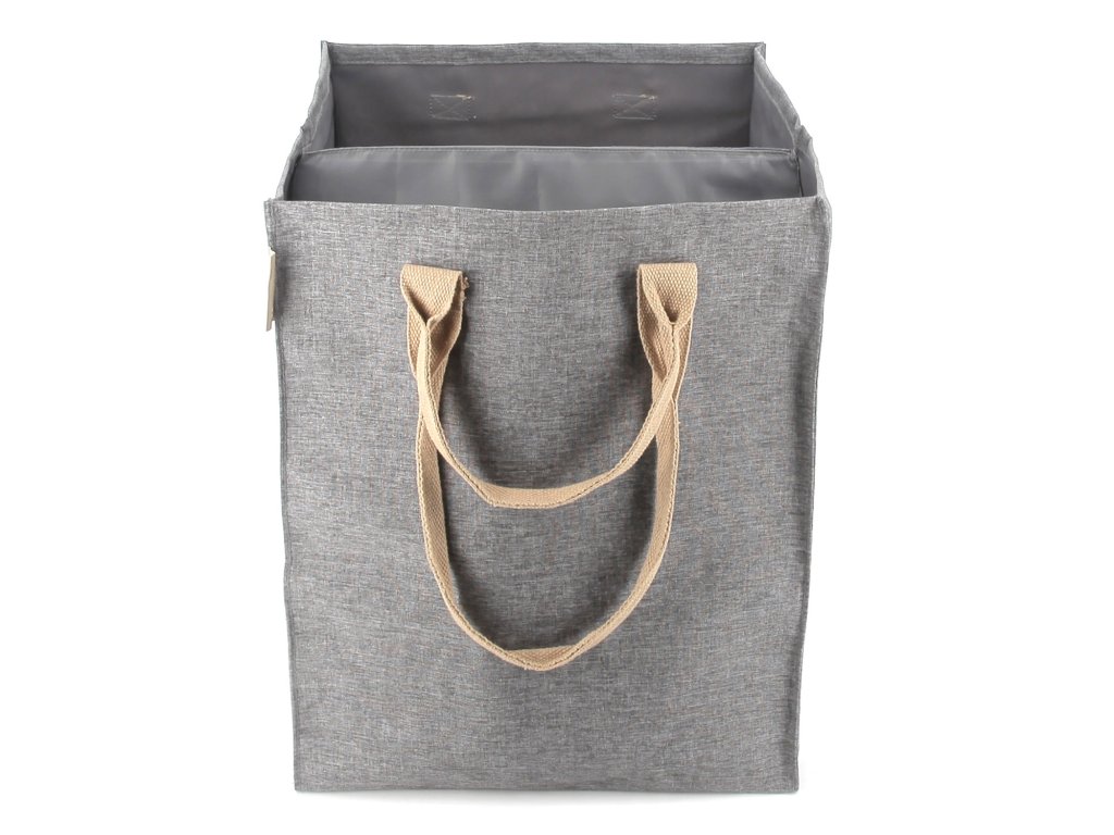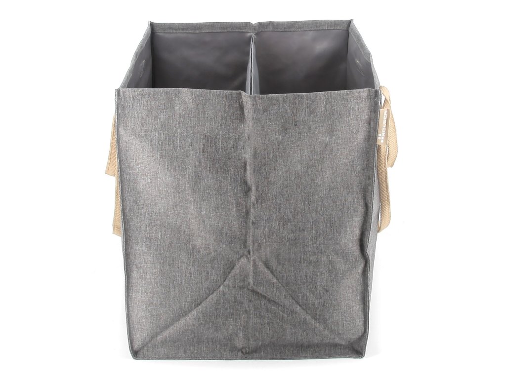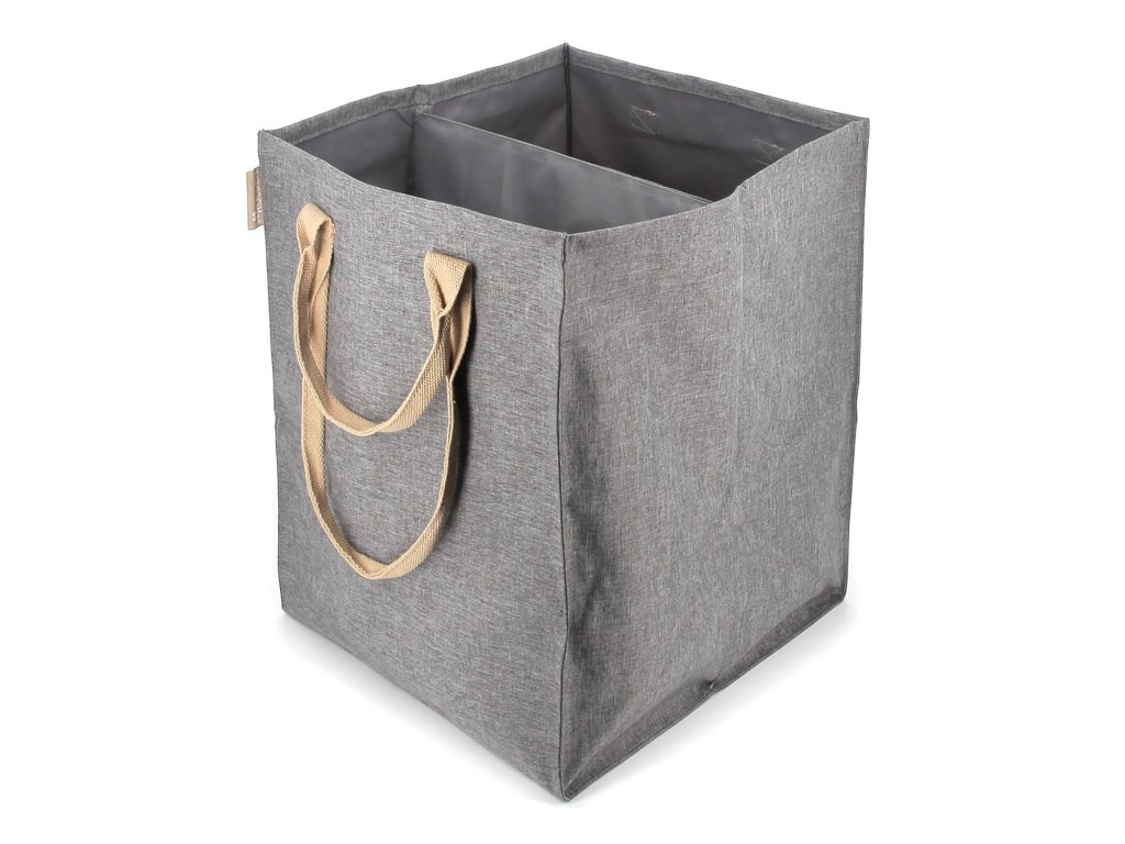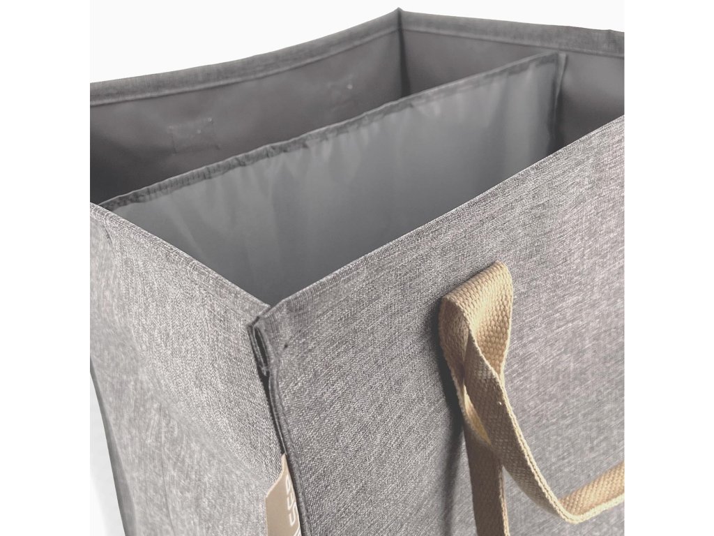 Moderní a praktický koš na prádlo je užitečným doplňkem každé domácnosti. Je vybaven dvěma oddělenými přihrádkami o celkovém objemu 71 litrů a poskytuje dostatek místa pro uložení špinavého prádla celé rodiny. Dělící stěna je vyztužena kovovým rámečkem, což usnadňuje třídění špinavého prádla. Pevný omyvatelný materiál s jemnou strukturou připomínající tweed působí nadčasově a zapadne tak do většiny interiérů. Koš je vybaven dvěma látkovými uchy různých délek, která zajišťují pohodlné přenášení v ruce i přes rameno. Tašku lze použít nejen na špinavé prádlo, ale také na ukládání dek, hraček či jiných textilií. A pokud tašku zrovna nepoužíváte, můžete ji snadno složit do plochého tvaru, ve kterém je i dodávána.