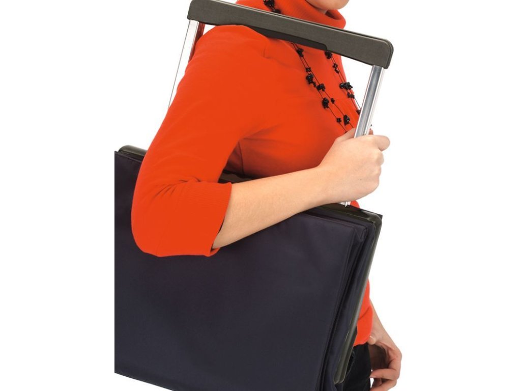 Lehká hliníková kostrukce Plegamatic s dvěma menšími koly vyniká především svou výjimečnou skladností, díky níž se pohodlně vejde třeba i do šuplíku. Několika snadnými pohyby ji totiž složíte do tvaru větší kabelky, kterou můžete hodit přes rameno nebo jednoduše nést v ruce ve chvíli, kdy nemáte žádný náklad. Vyztužené dno dodává tašce potřebnou pevnost a zajišťuje, aby se náklad při přepravě neponičil. Podvozek má dvě boční skládací opory, které umožňují odstavit tašku volně do prostoru. Ergonomické držadlo zajišťuje pohodlný úchop a přispívá tak ke snadné manipulaci. Výška konstrukce v rozloženém stavu je 97 cm.