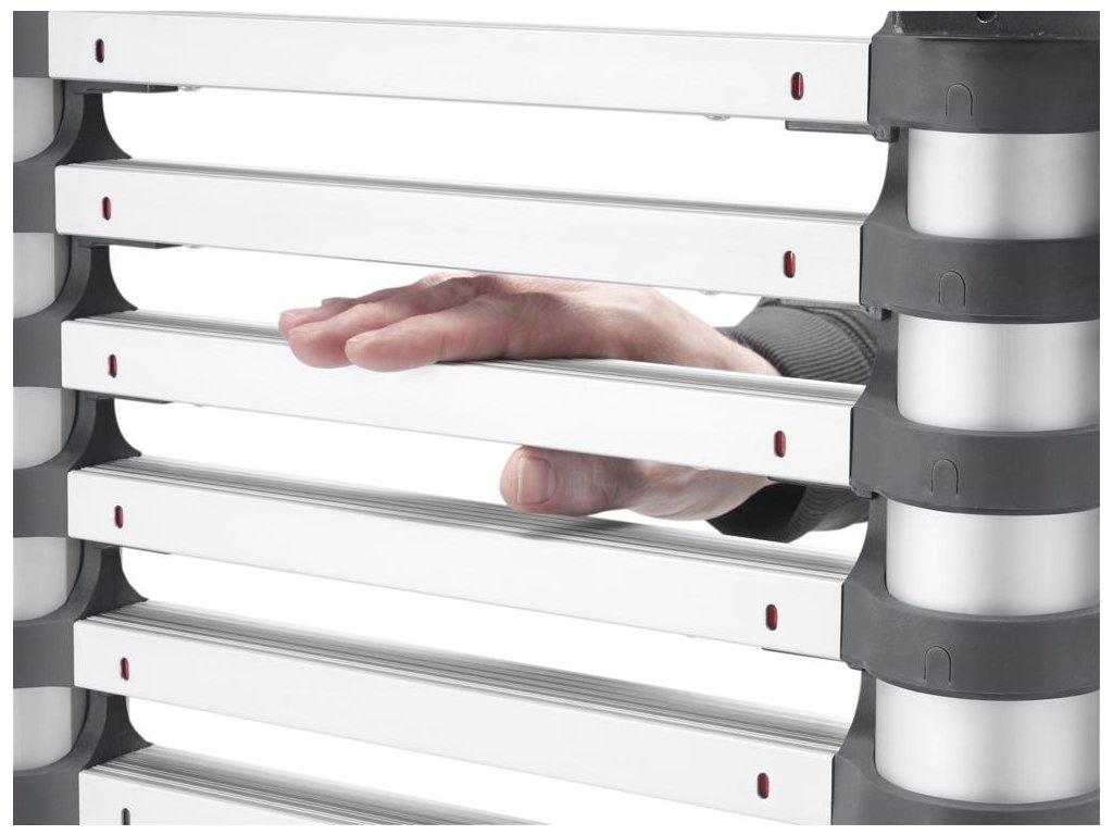Výšku žebříku lze individuálně nastavit vysunutím jednotlivých příčlí