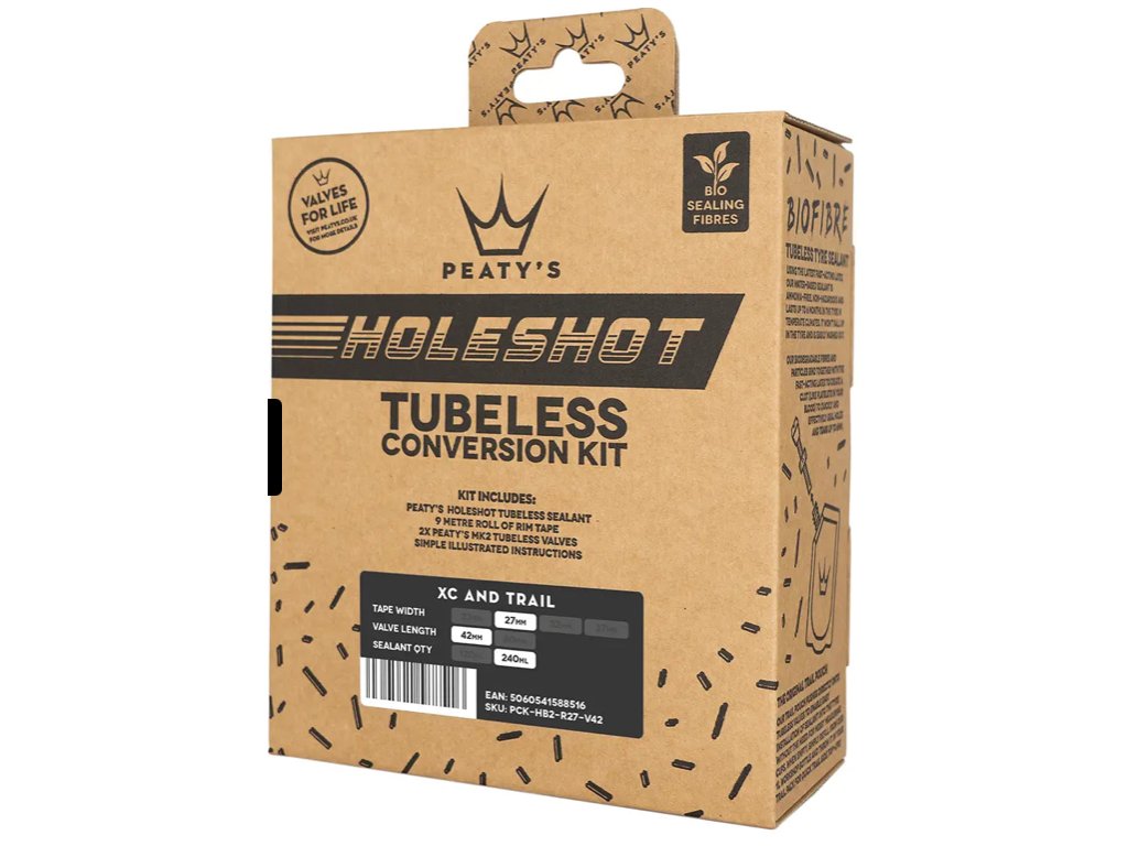 Sada Peaty's Tubeless Conversion Kit obsahuje vše, co potřebujete k přestavbě kola na bezduše. Pokud si ceníte více času stráveného na kole a méně času stráveného opravou defektu, je tato sada ideální. Klíčové vlastnosti produktu - 4 varianty podle šířky ráfku - Obsahuje pásku na ráfek Peaty's Holeshot, bezdušové ventilky MK2 a bezdušový tmel Holeshot - Snadno srozumitelný návod pro začínající uživateleDoplňkové parametry