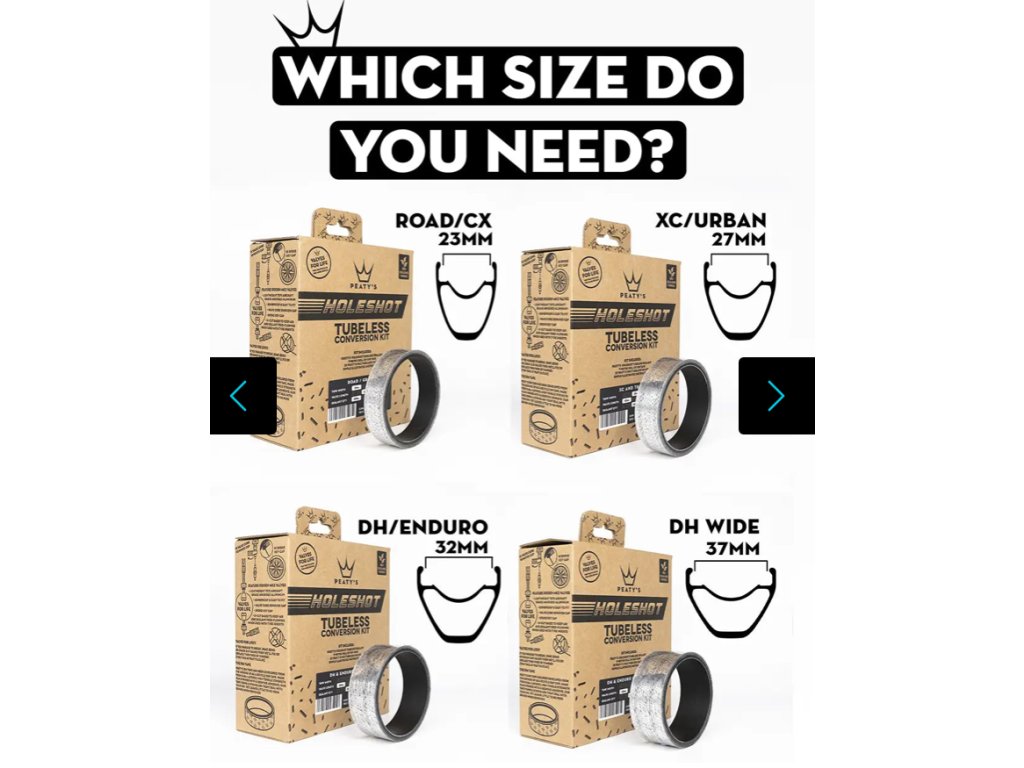 Sada Peaty's Tubeless Conversion Kit obsahuje vše, co potřebujete k přestavbě kola na bezduše. Pokud si ceníte více času stráveného na kole a méně času stráveného opravou defektu, je tato sada ideální. Klíčové vlastnosti produktu - 4 varianty podle šířky ráfku - Obsahuje pásku na ráfek Peaty's Holeshot, bezdušové ventilky MK2 a bezdušový tmel Holeshot - Snadno srozumitelný návod pro začínající uživateleDoplňkové parametry