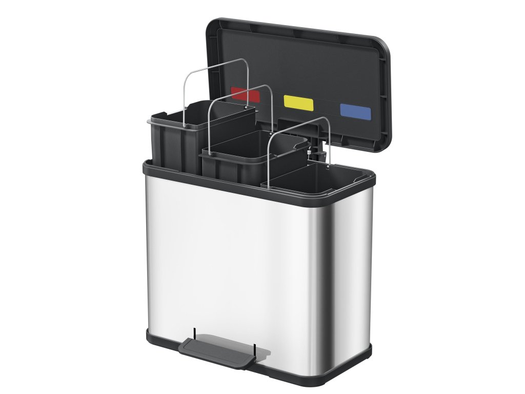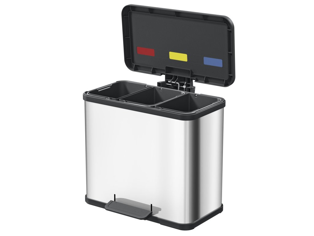 Hailo Öko trio Plus L stříbrný Nášlapný třídič odpadu s tlumeným zavíráním víka - 3 x 9 litrů