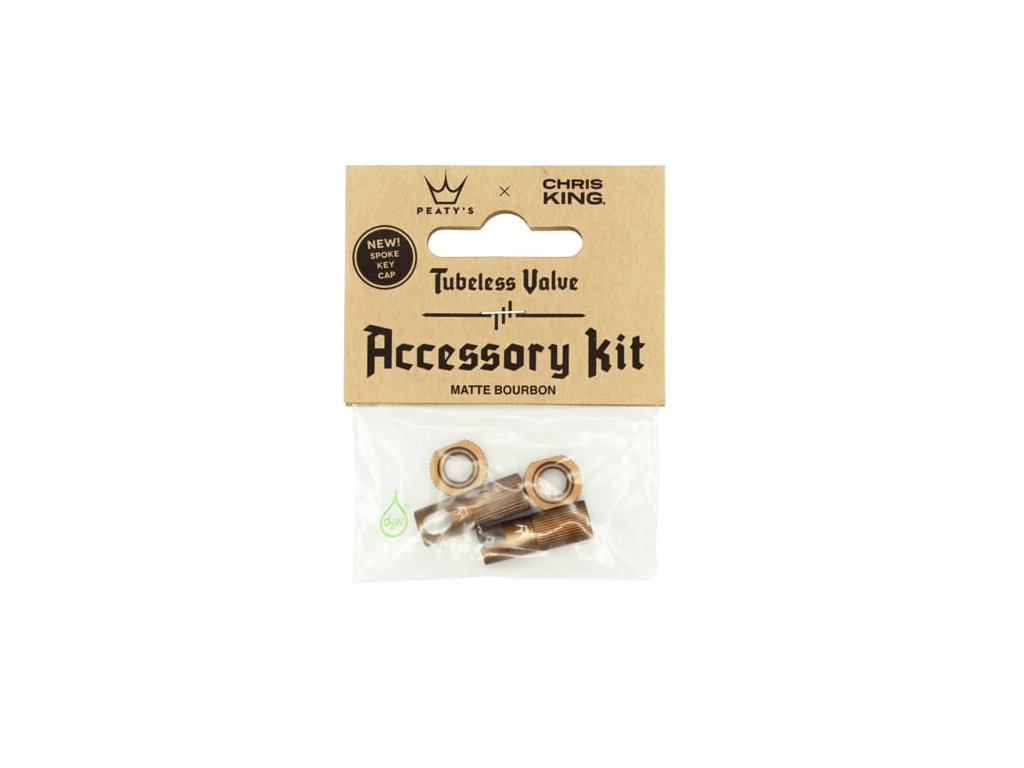 Ať už jste ztratili čepičku ventilku, nebo toužíte po nestandardní barevné kombinaci, sada Accessory Kit* bude pro vás vítaným východiskem. Obsah balení: 1x centrovací klíč pro standardní 3,4mm nipple 1x klíč na vyšroubování vnitřního ventilku 2x pojistná matka * Kompatibilní se všemi bezdušovými ventily Peaty’sDoplňkové parametry