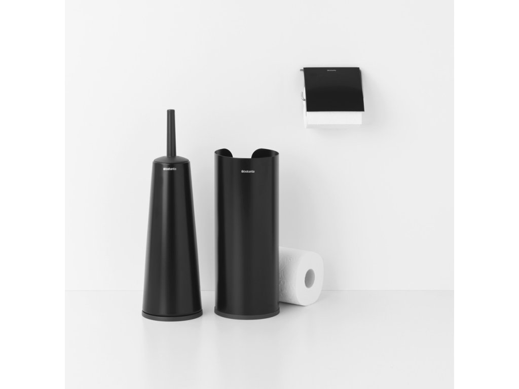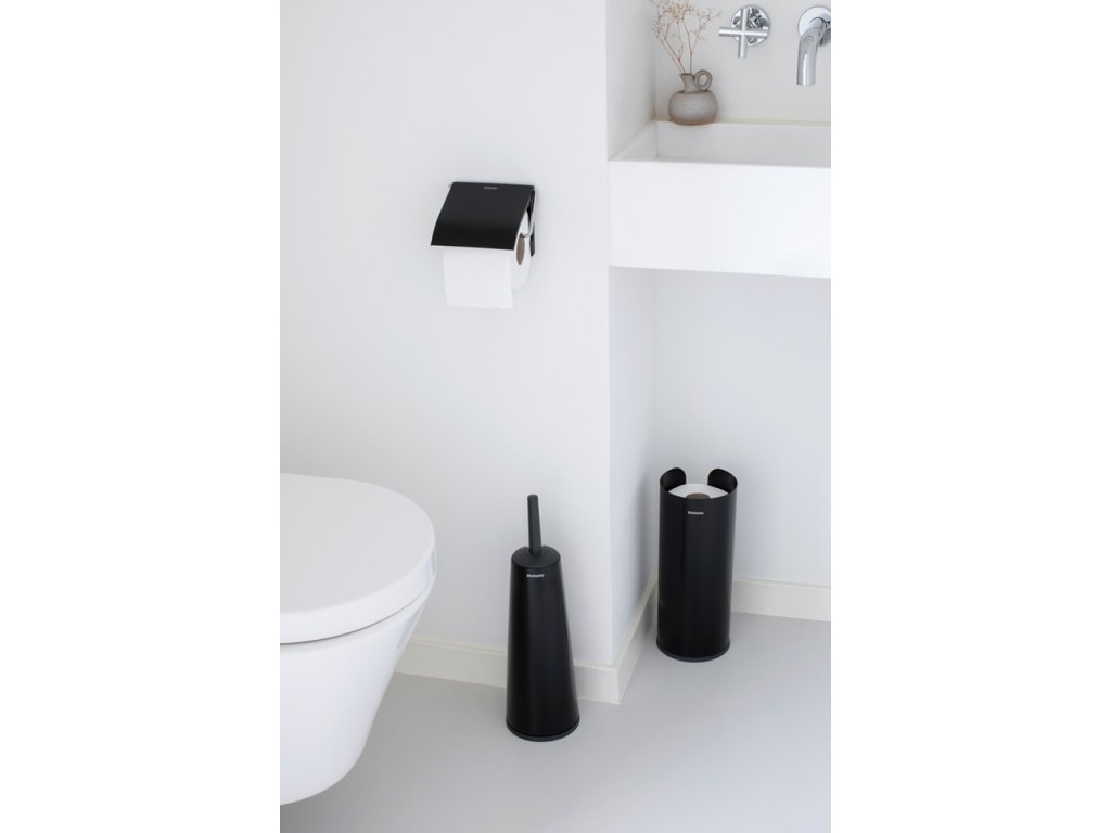 Minimalistický držák toaletního papíru chrání toaletní papír před prachem a usnadňuje vytahování papíru z role a zásobník toaletního papíru diskrétně drží až tři role. Vše, co potřebujete, abyste si vybavili toaletu.